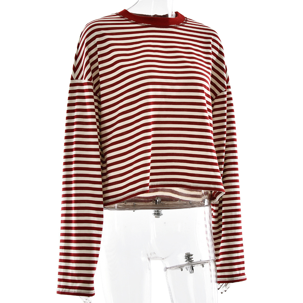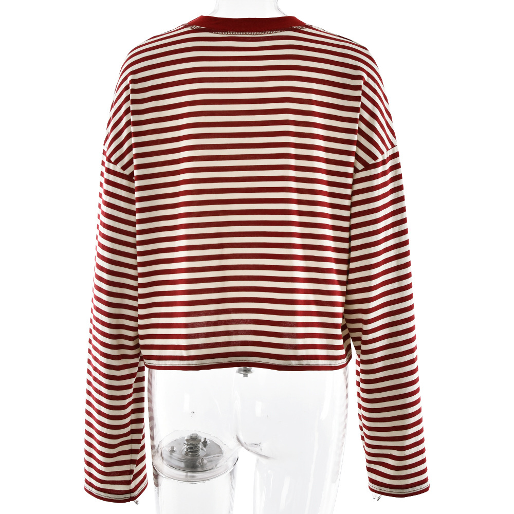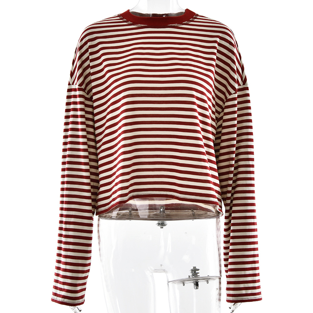 Arrival Long Sleeved Striped T shirt Casual Contrast Color Slim round Neck Top