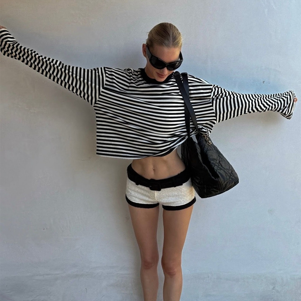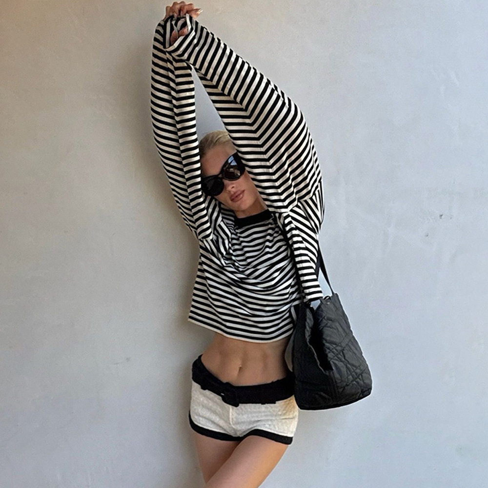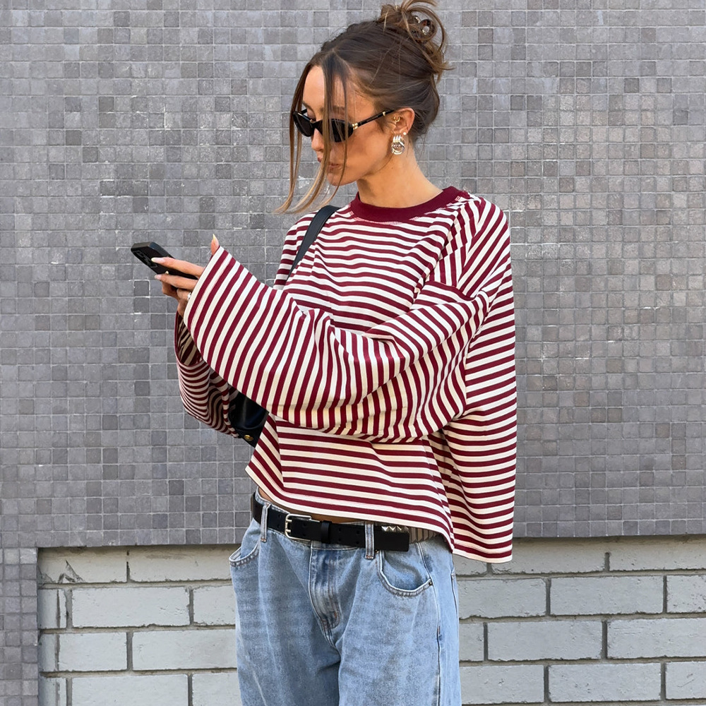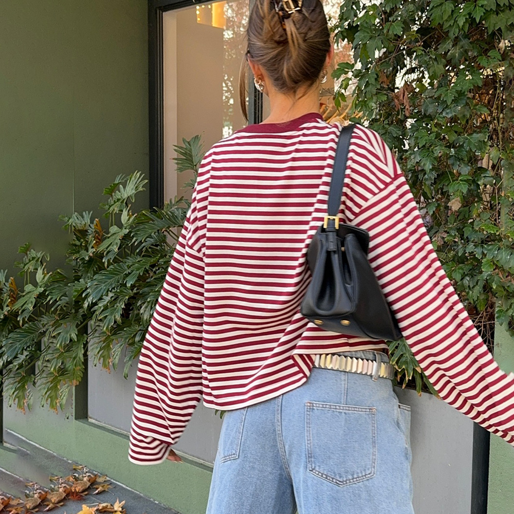 Arrival Long Sleeved Striped T shirt Casual Contrast Color Slim round Neck Top