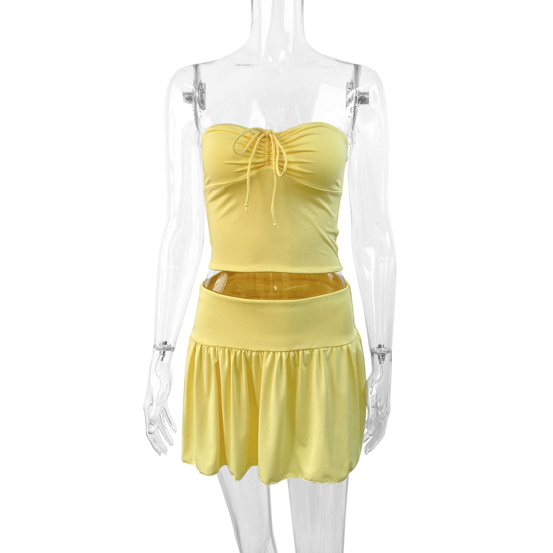 Arrival Summer Women Clothing Sexy Skirt Shoulder Baring Tube Top Solid Color Waist Tight A line Skirt Two Pieces