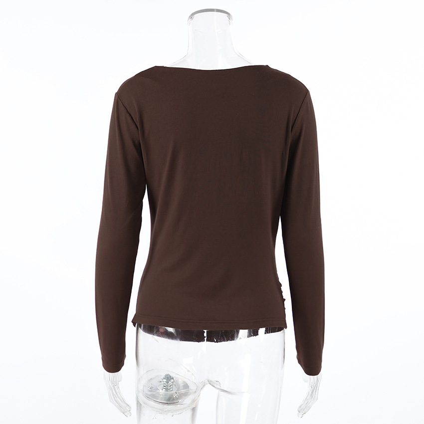 Autumn Arrival Pleating Niche Slim Waist Tight Sexy Long Sleeve Bottoming Shirt for Women
