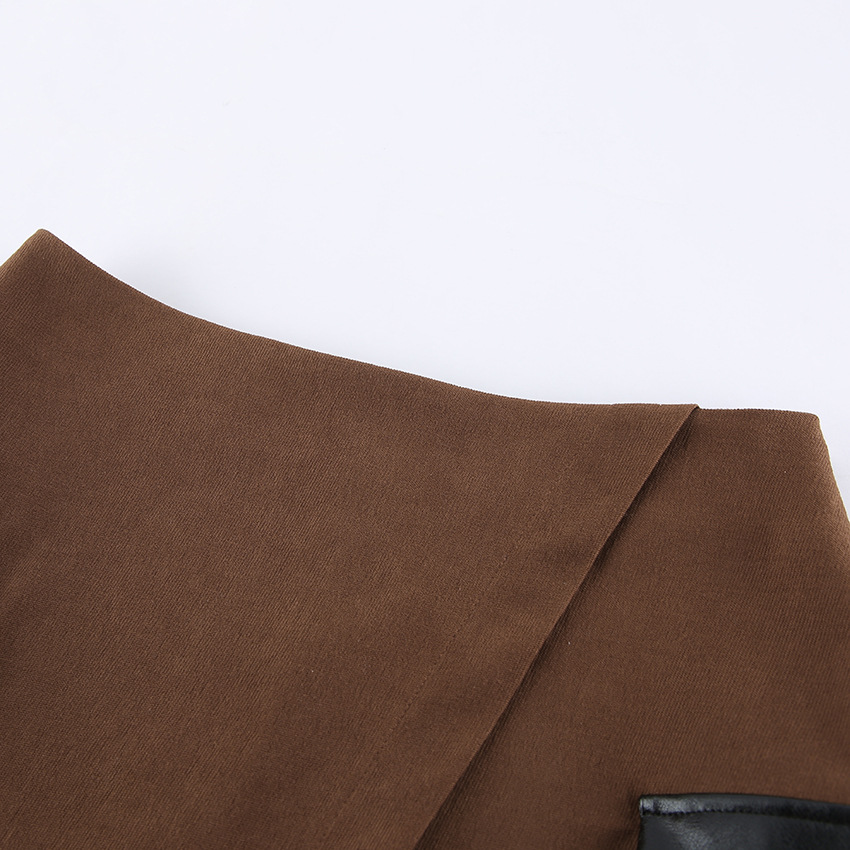 Autumn High Sense Casual Women Short High Waist Color Stitching Irregular Asymmetric Skirt Two Piece Sets