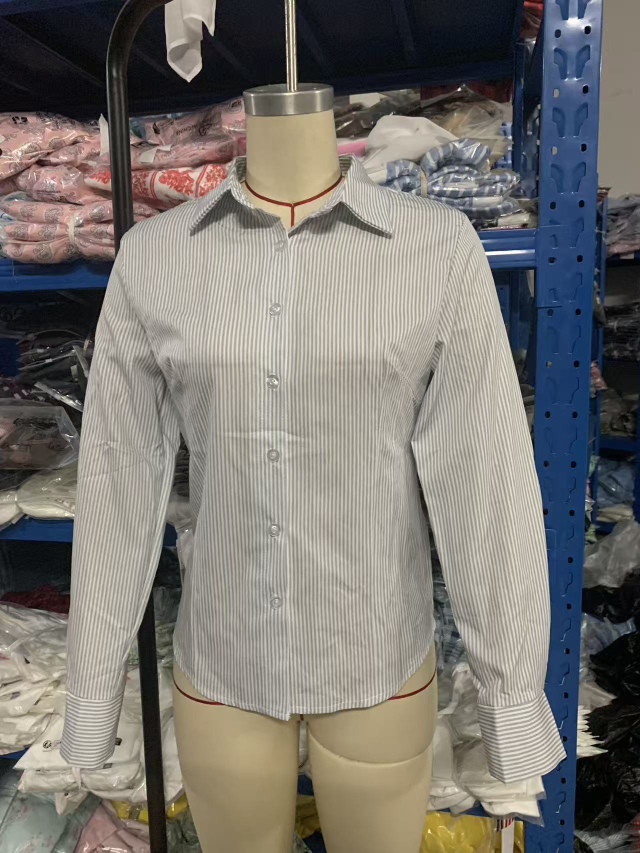Autumn Polo Collar Breasted Cardigan Long Sleeve Shirt Slim Fit All Matching Striped Top
