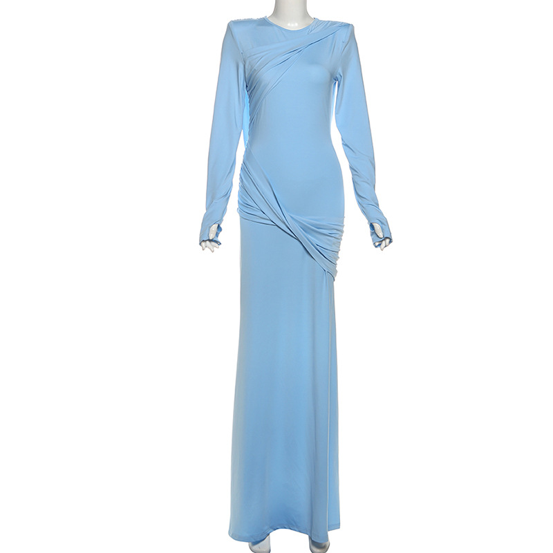 Autumn Sexy Slim Fit Backless Long Sleeve Solid Color Maxi Dress Dress Women Clothing