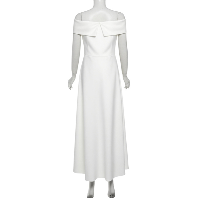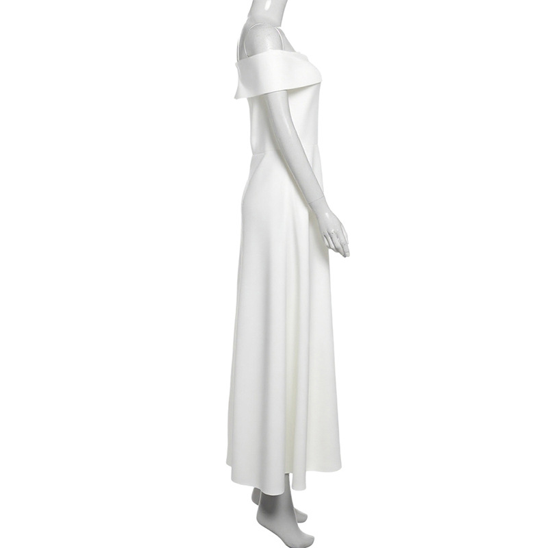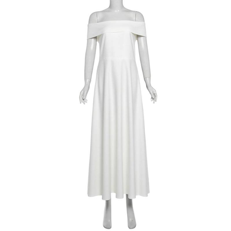 Autumn Sexy Slim off Shoulder Bandeau One Shoulder Solid Color Dress Women