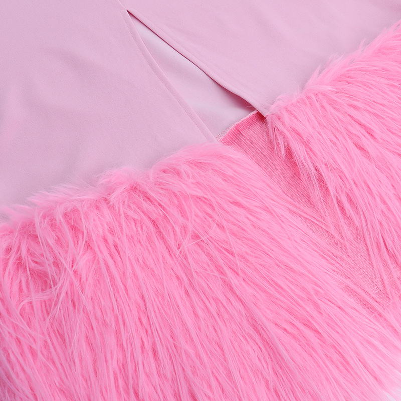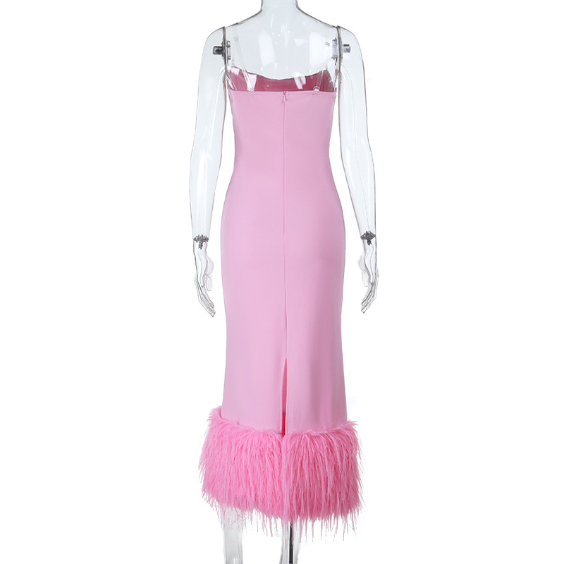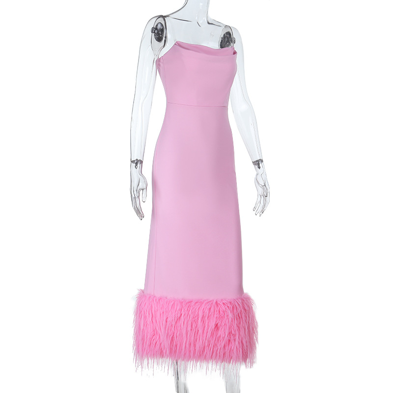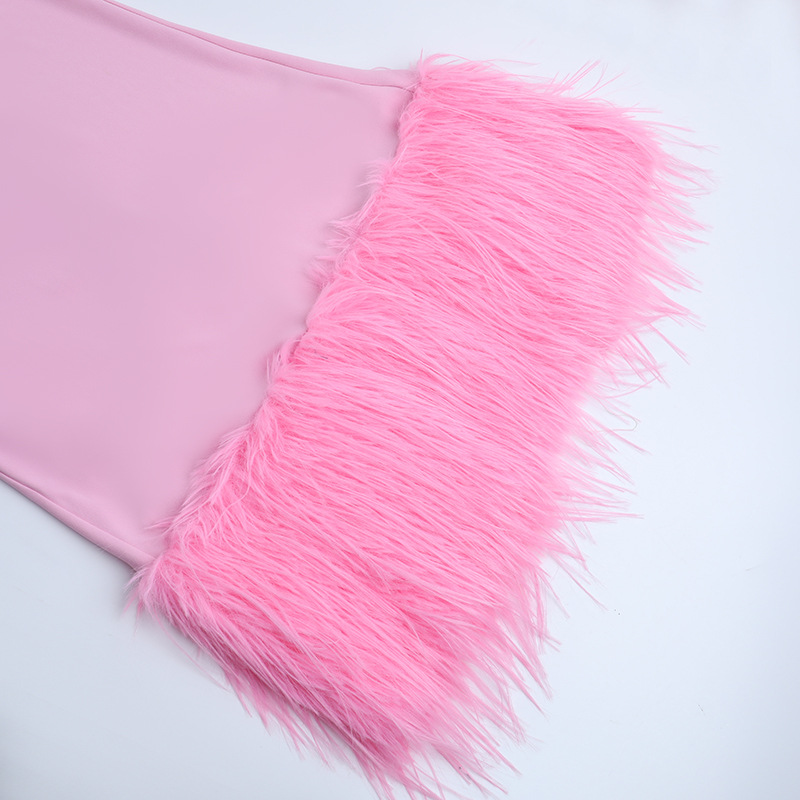 Autumn Solid Color Stitching Sexy Slim Tube Top Furry Party Sling Dress
