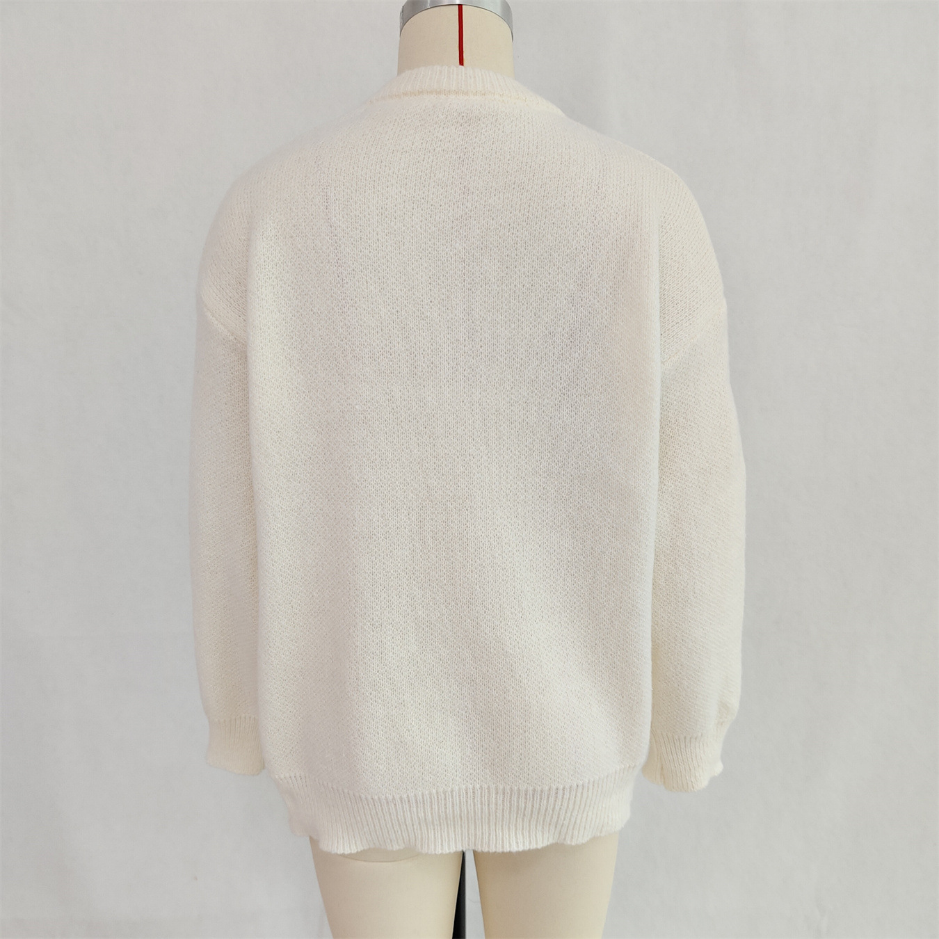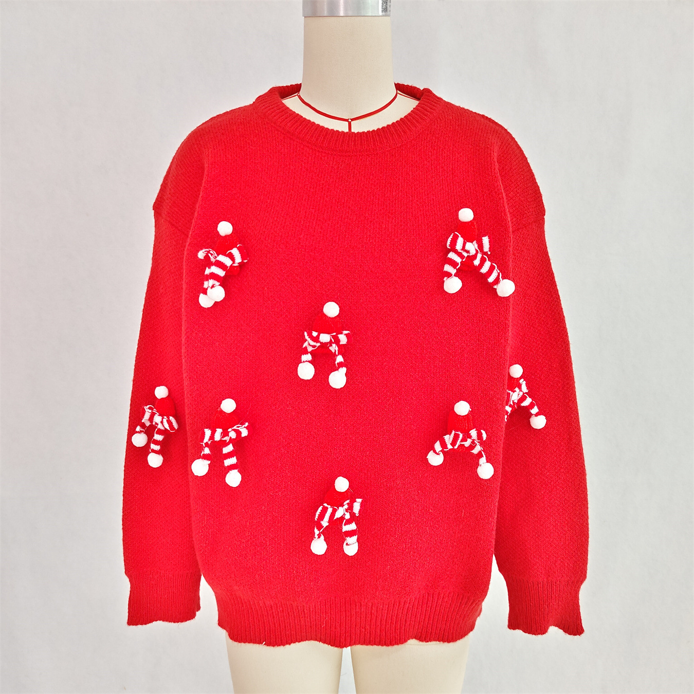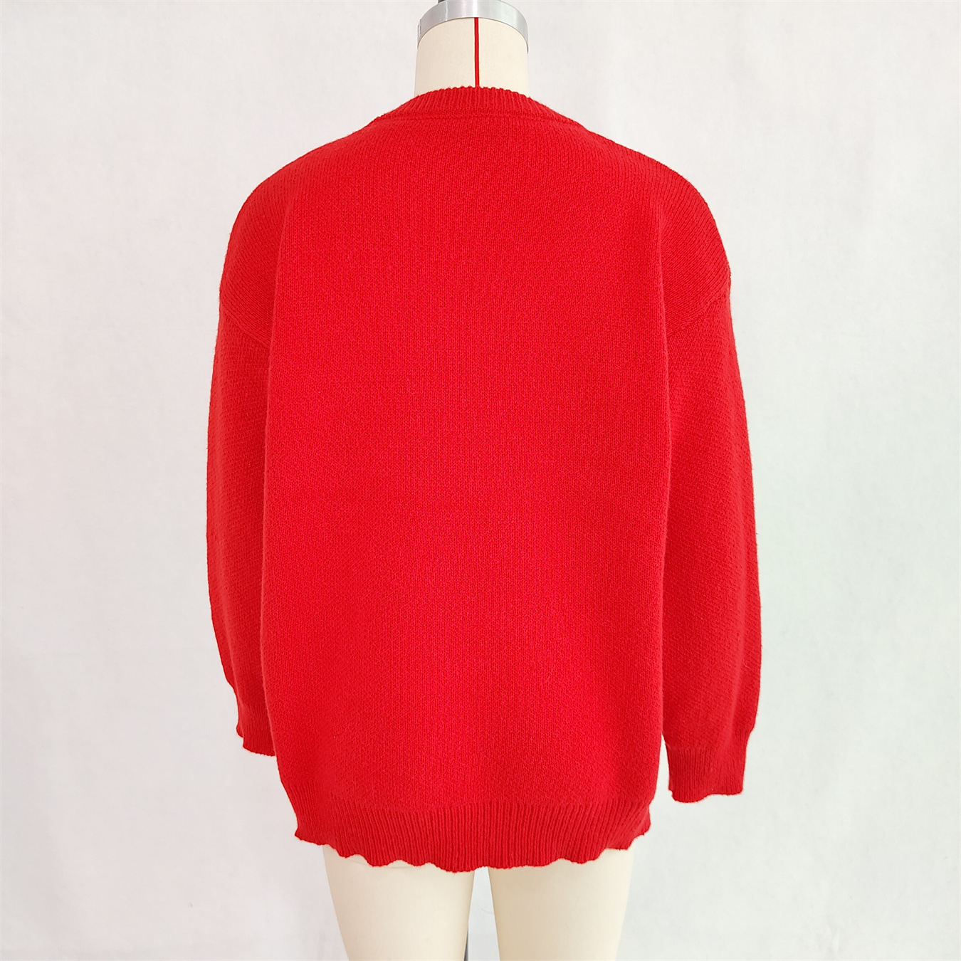 Autumn Winter Christmas Patchwork Bow Sweater Crew Neck Casual