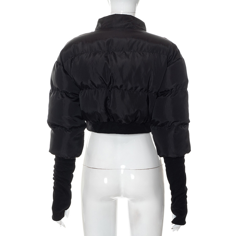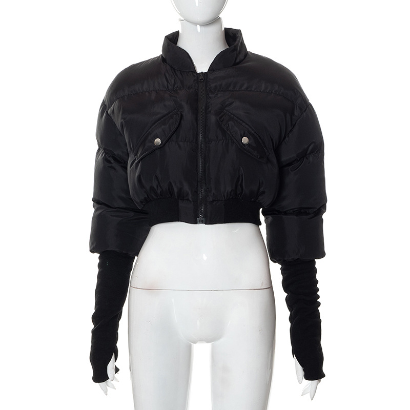 Autumn Winter Zipper Stitching Long Sleeved Slim Fit Short Cotton Jacket Women Clothing Outerwear