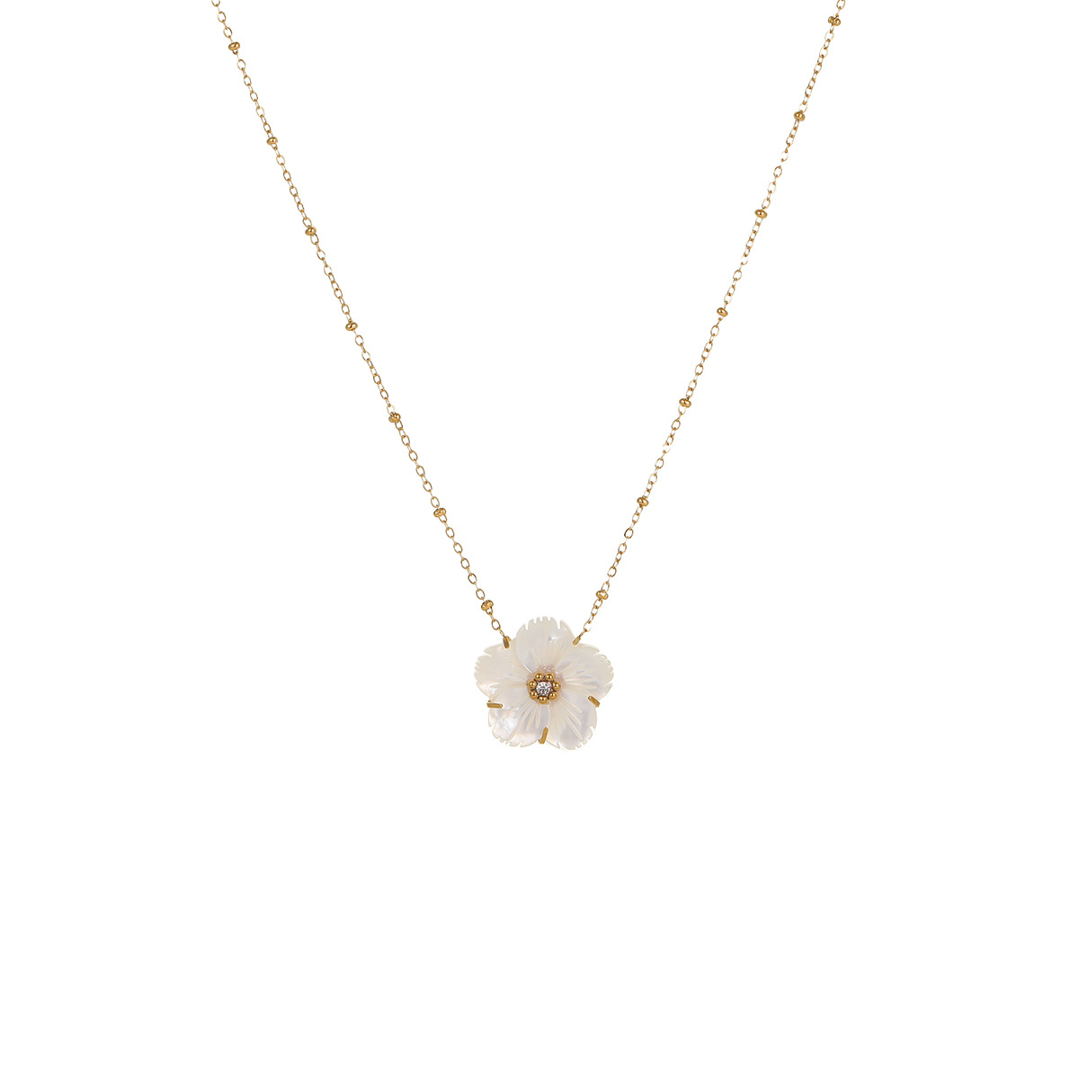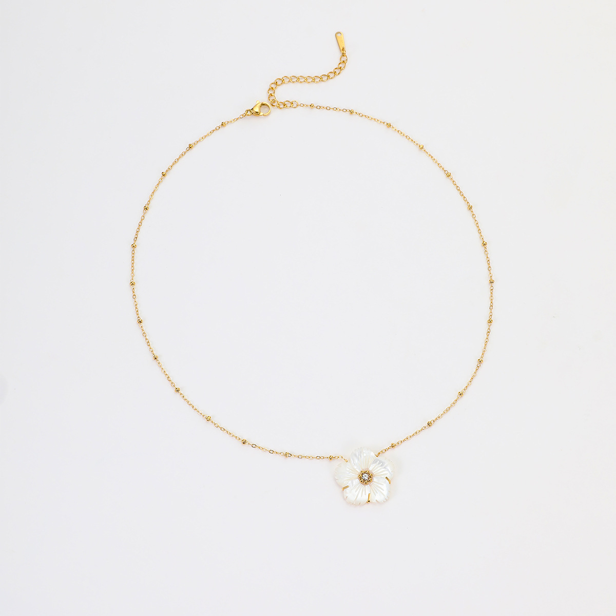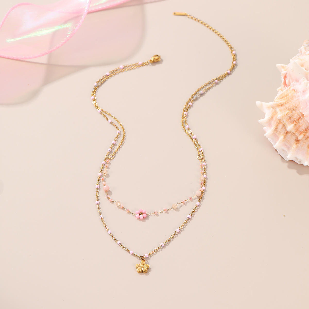 Beaded Floral Twin Stainless Steel Necklace 18K Gold Plating Non Fading Exquisite Necklace