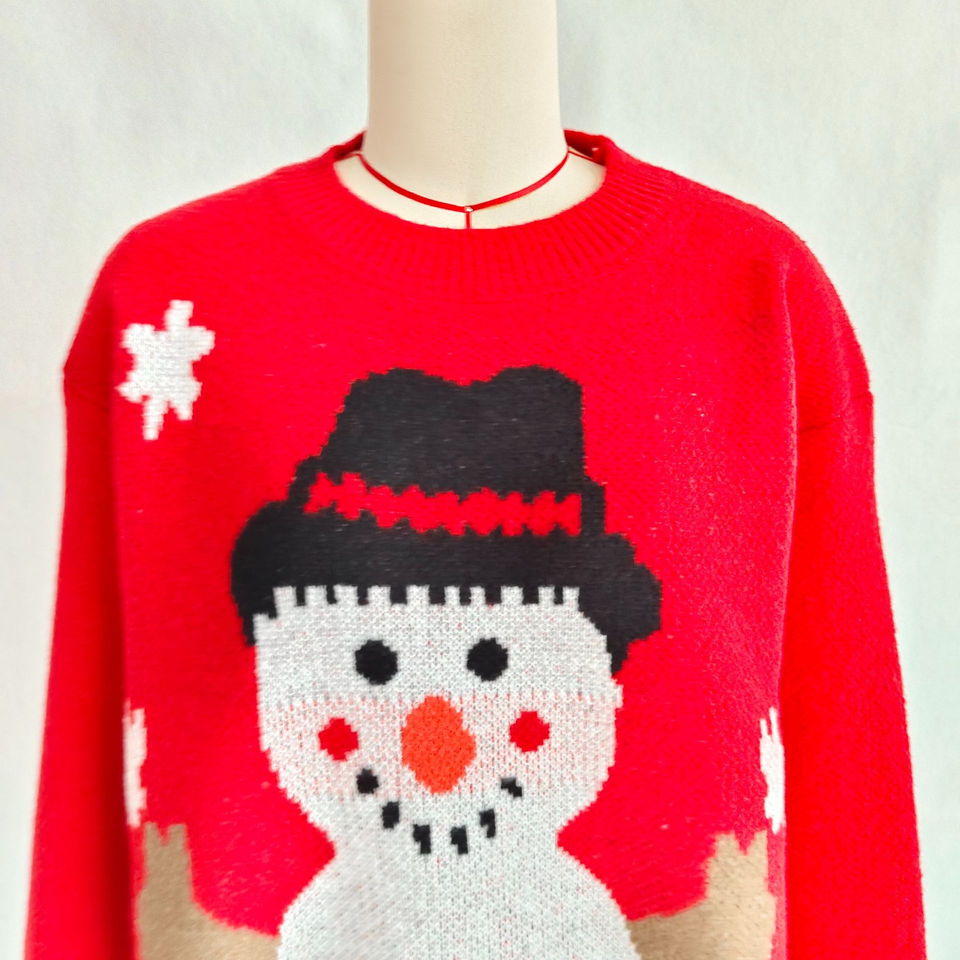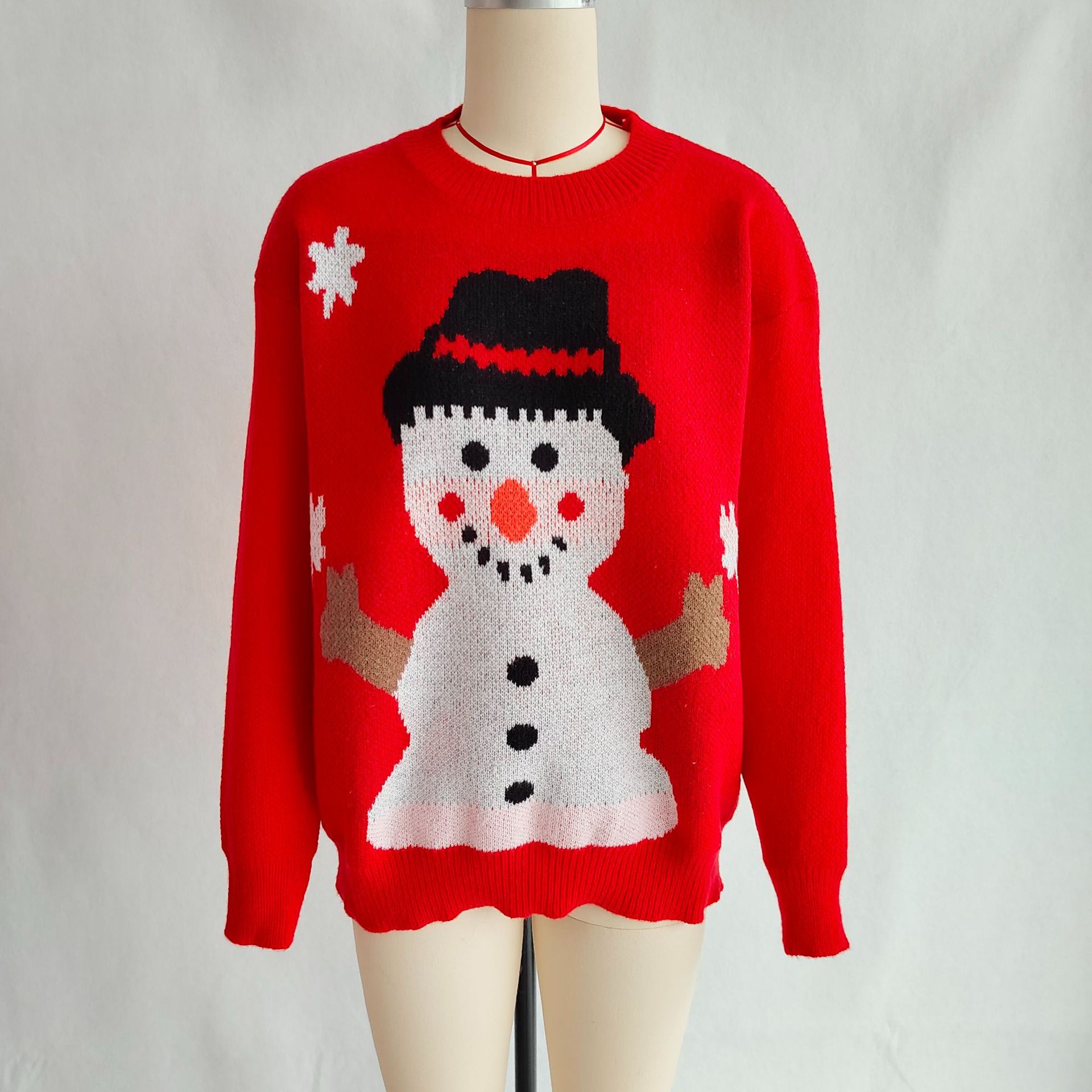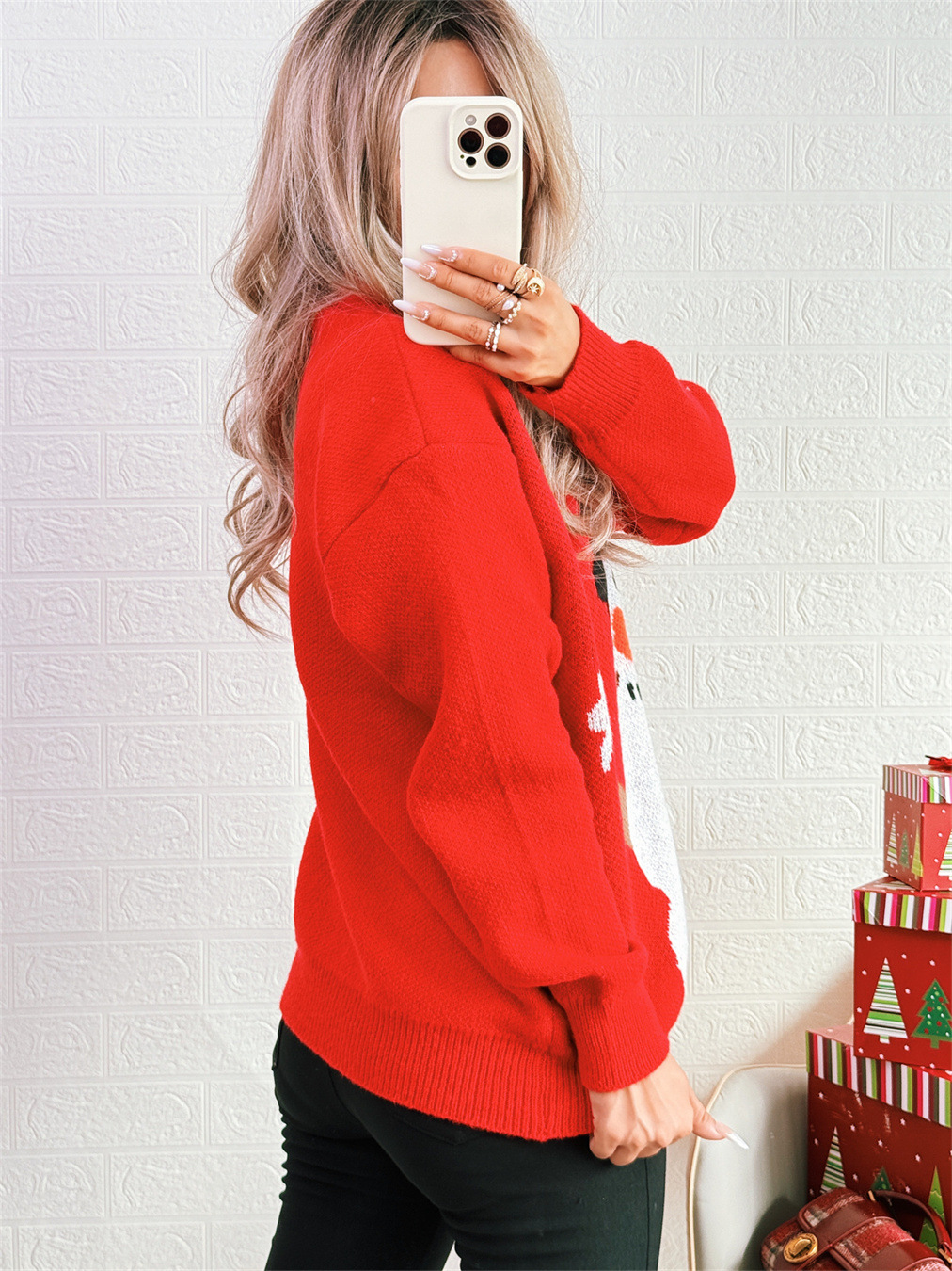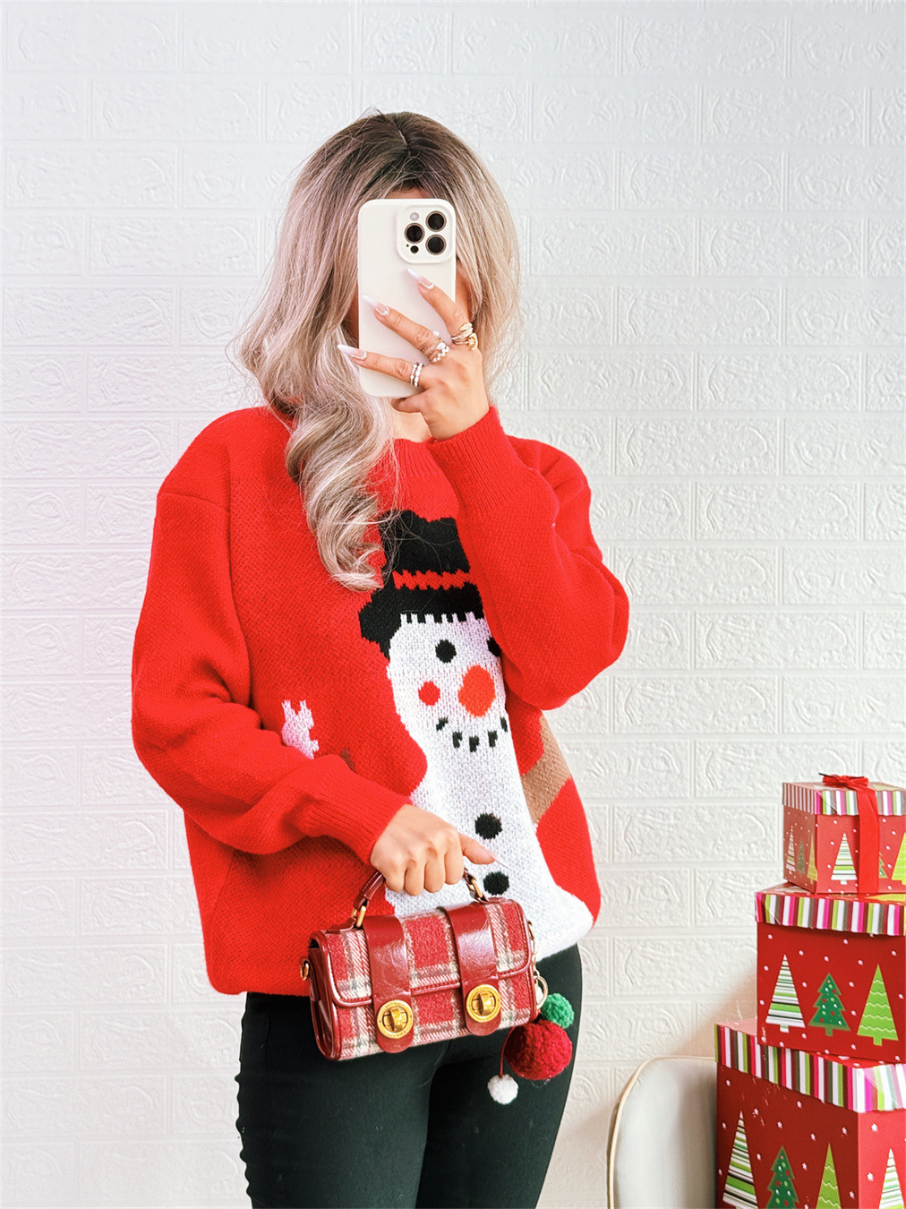 Casual Christmas Snowman Sweater round Neck Loose Chic Women Sweater