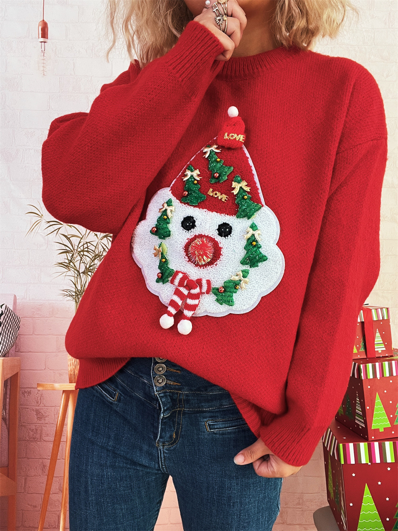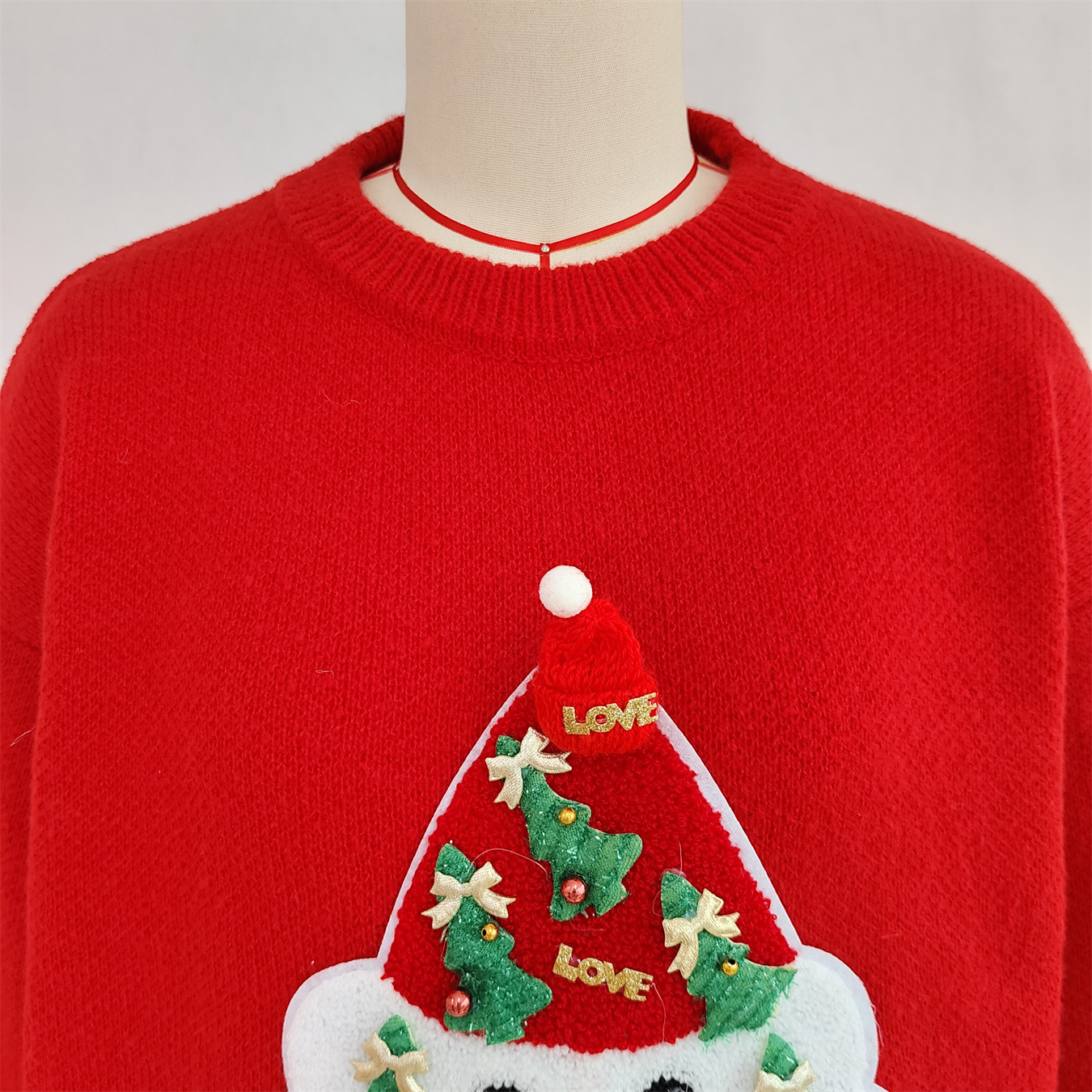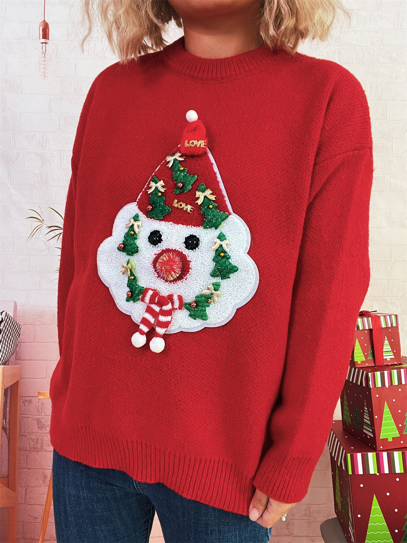 Christmas Cartoon Pattern Women Sweater Autumn Winter Casual Thermal Knitting Top