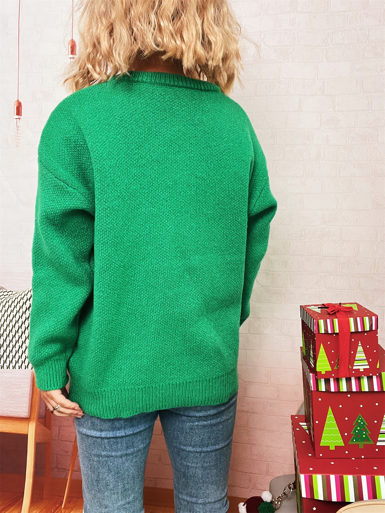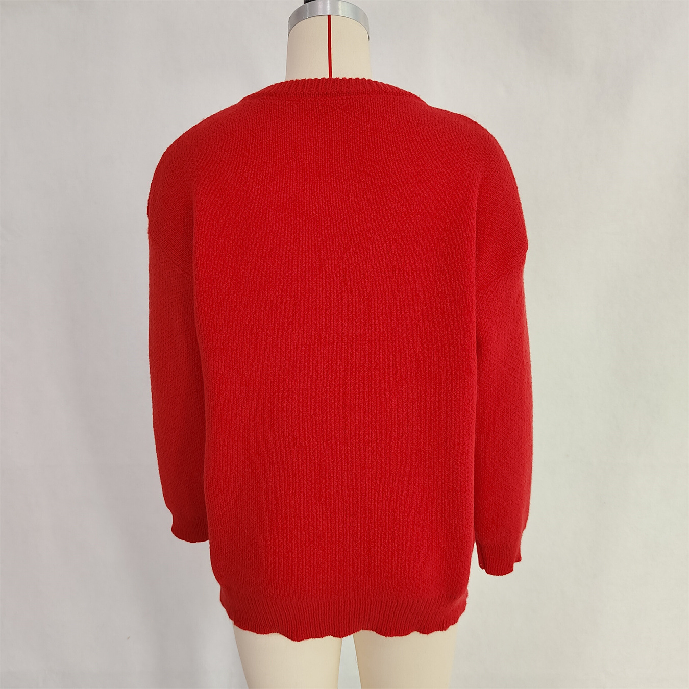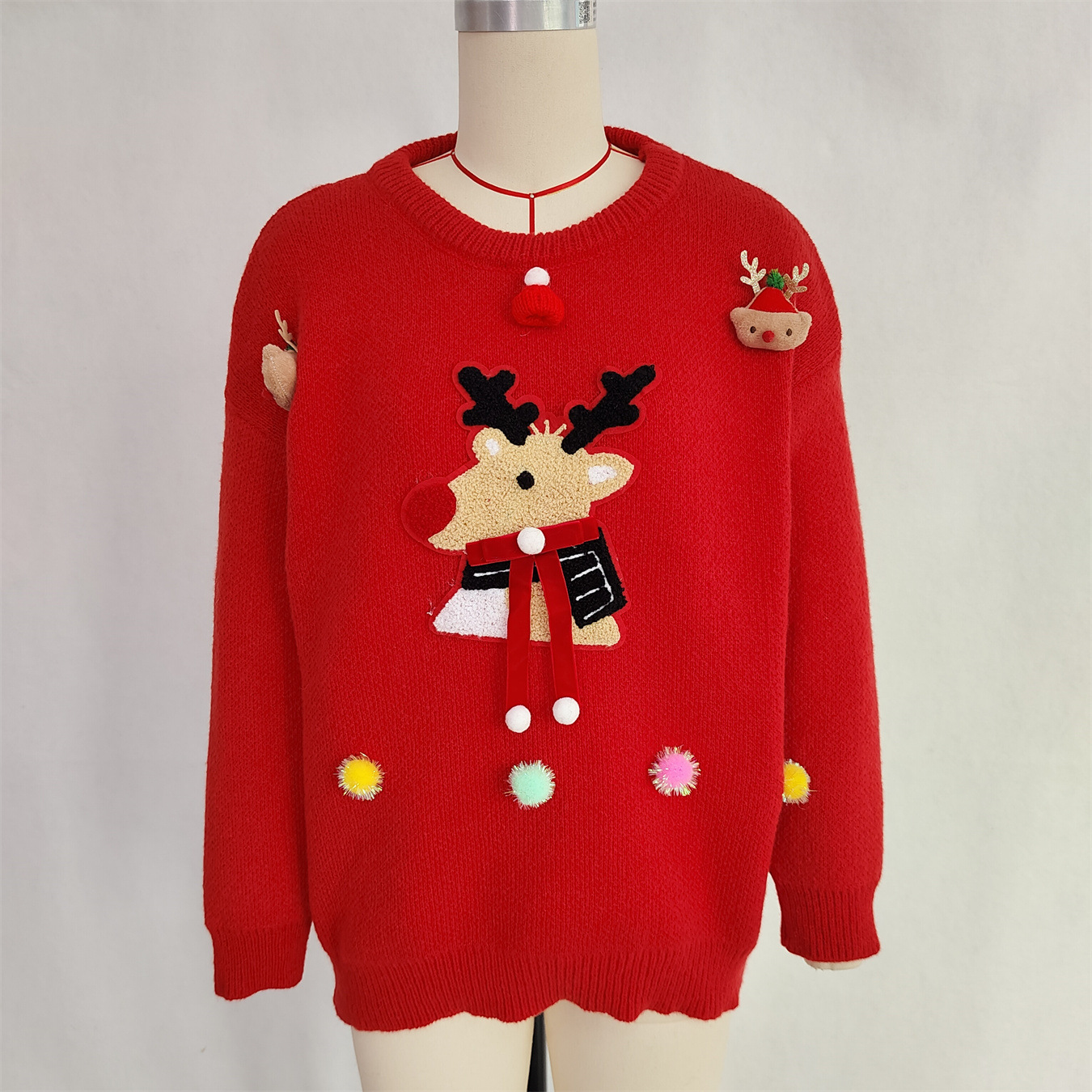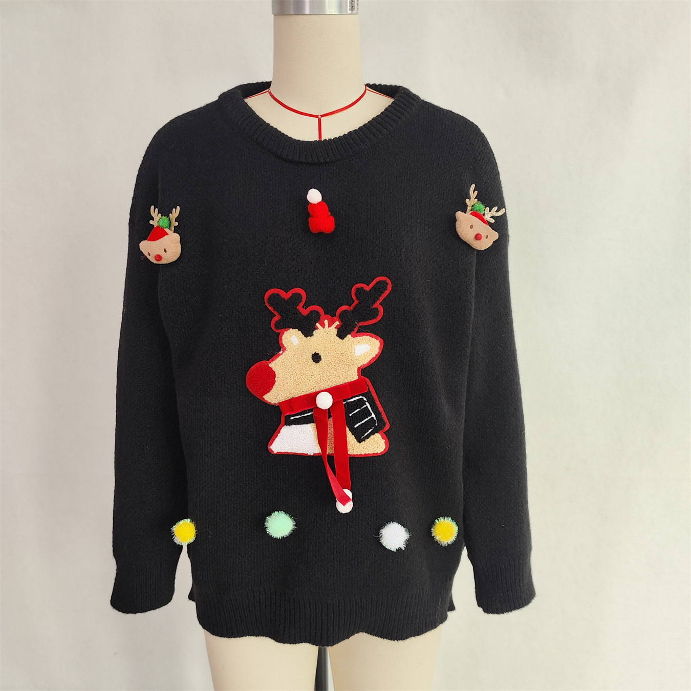 Christmas Patchwork Cartoon Deer Knitted Pullover round Neck Chic Sweater Women