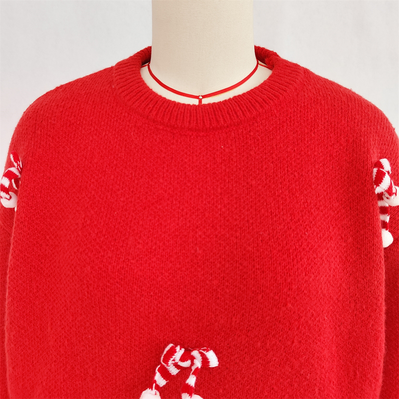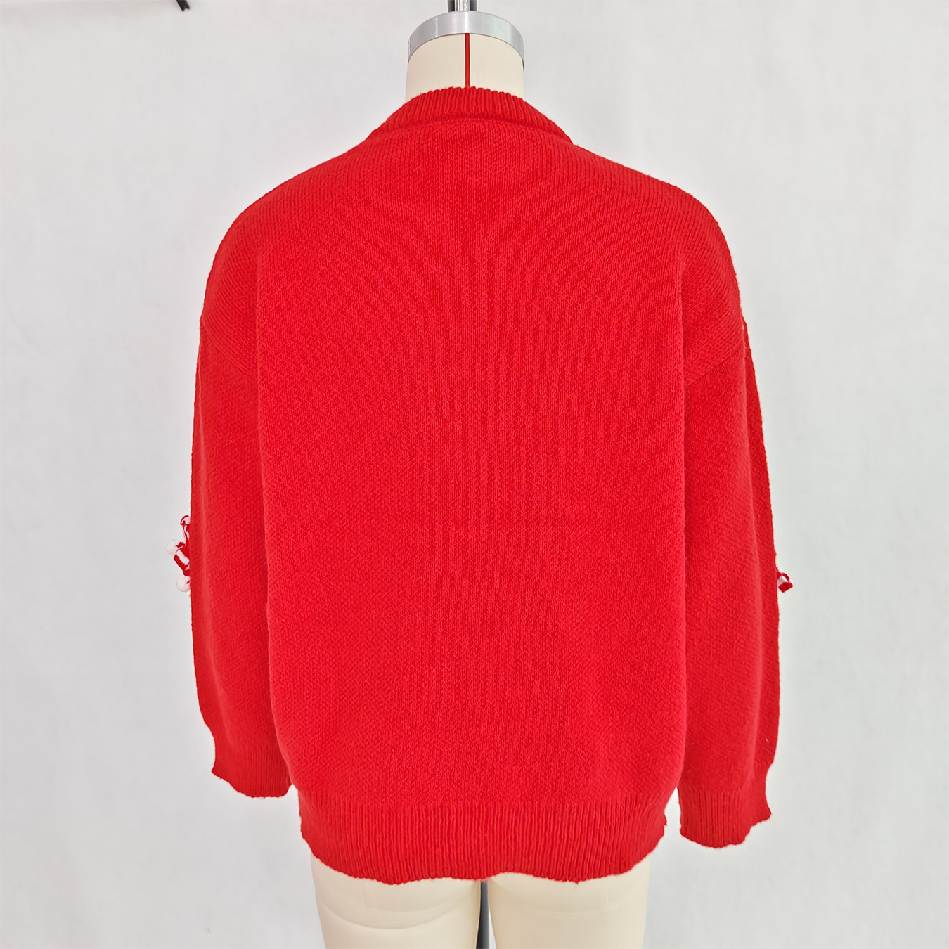 Christmas Stitching Bow Warm Sweater round Neck Sweet Idle Casual Knitted Top