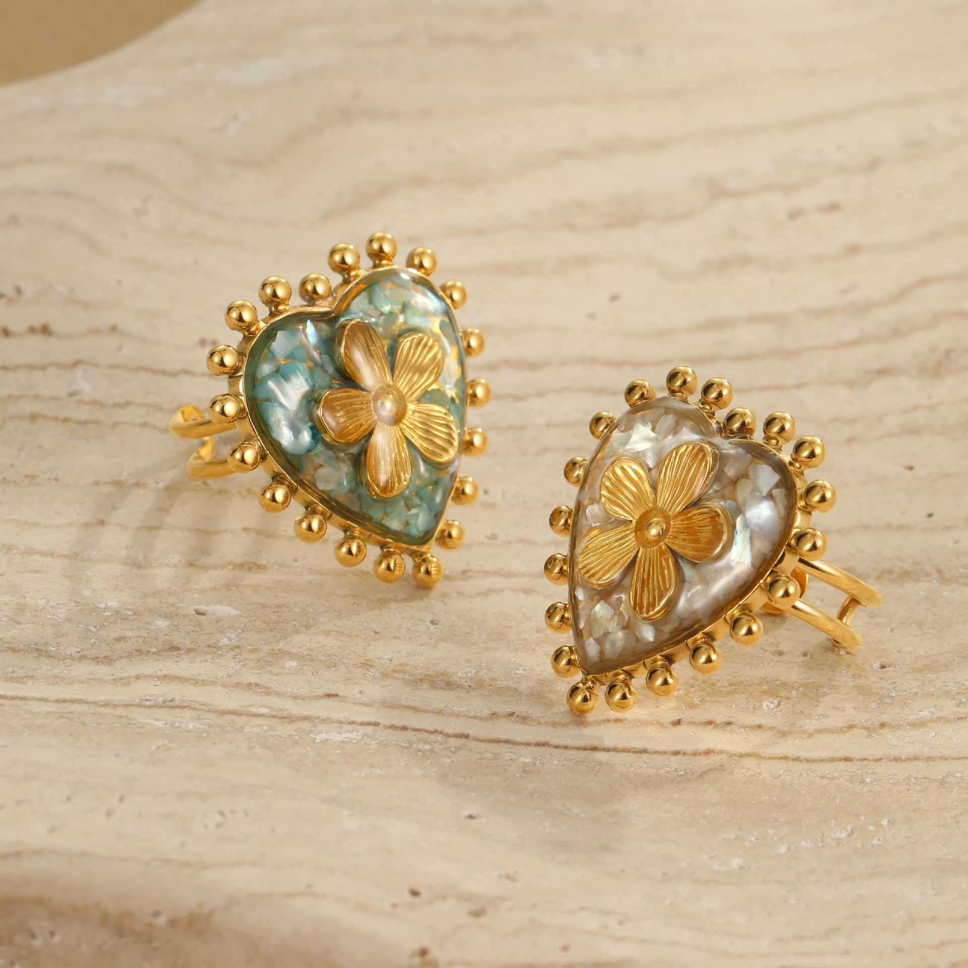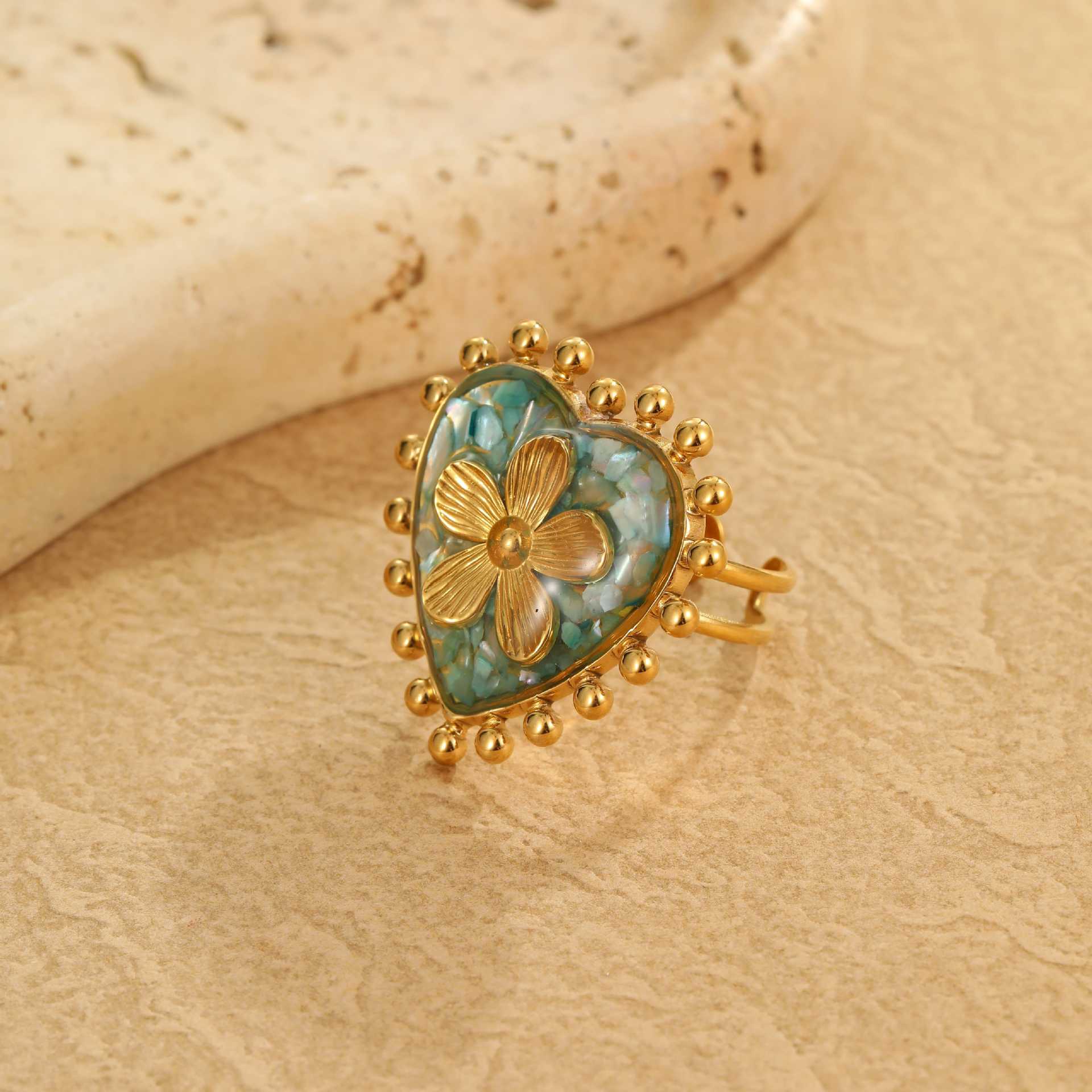Elegant French Advanced Oil Dripping Titanium Steel Ring Stainless Steel 18K Gold Love Floral Bracelet