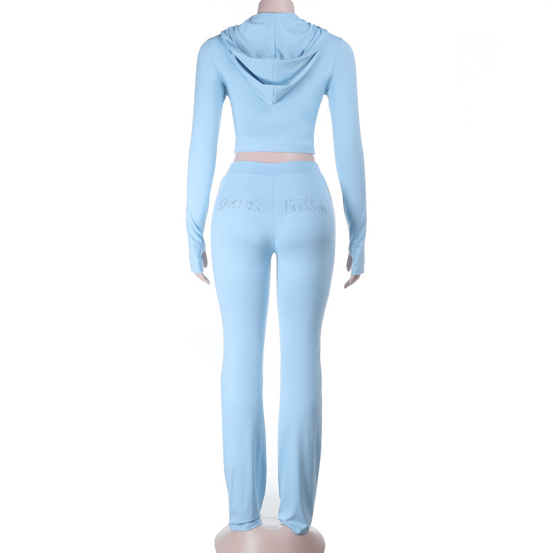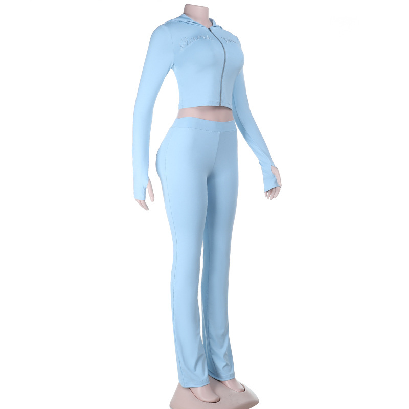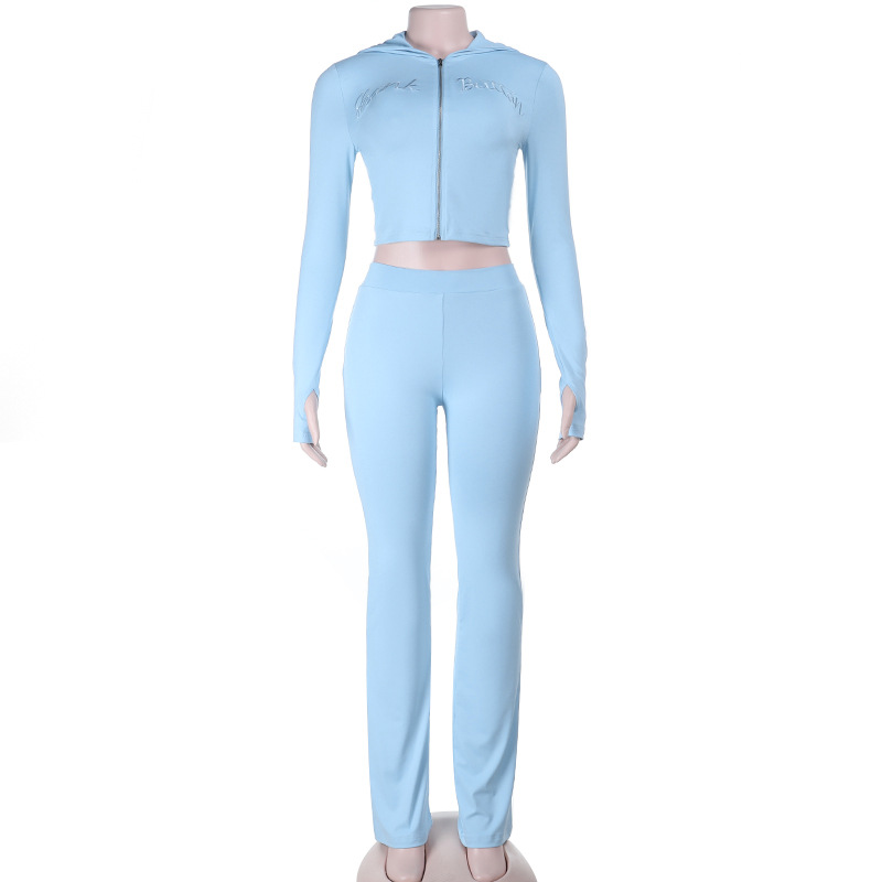 Embroidery Hooded Sports Autumn Winter Long Sleeve Zipper Trousers Yoga Two Piece Sets Women