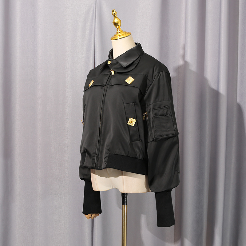 Fall Comfort Casual Coat Stand Collar Stitching Design Trendy High Grade Short Coat Women Clothing