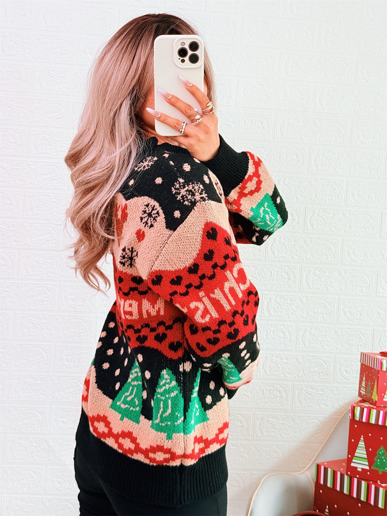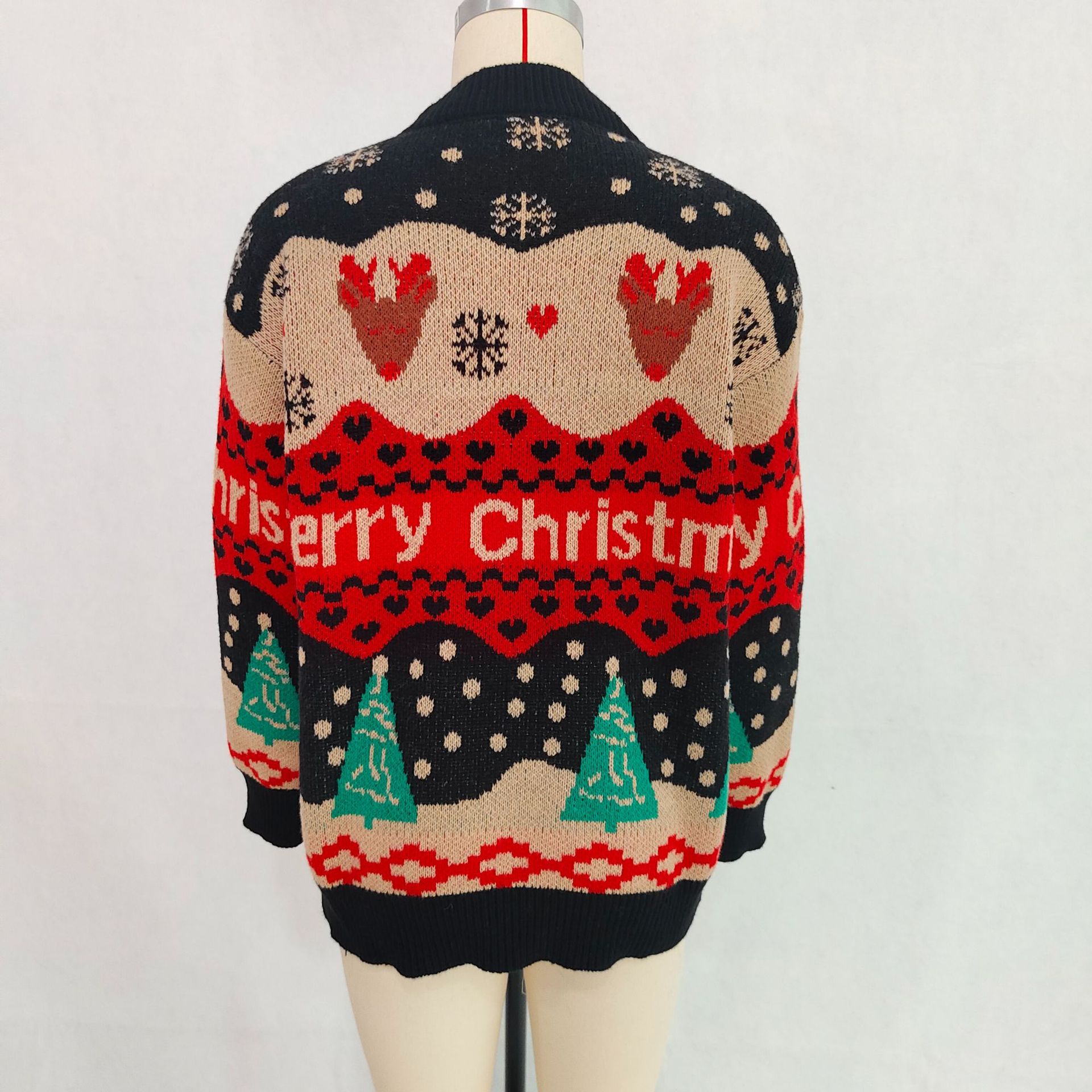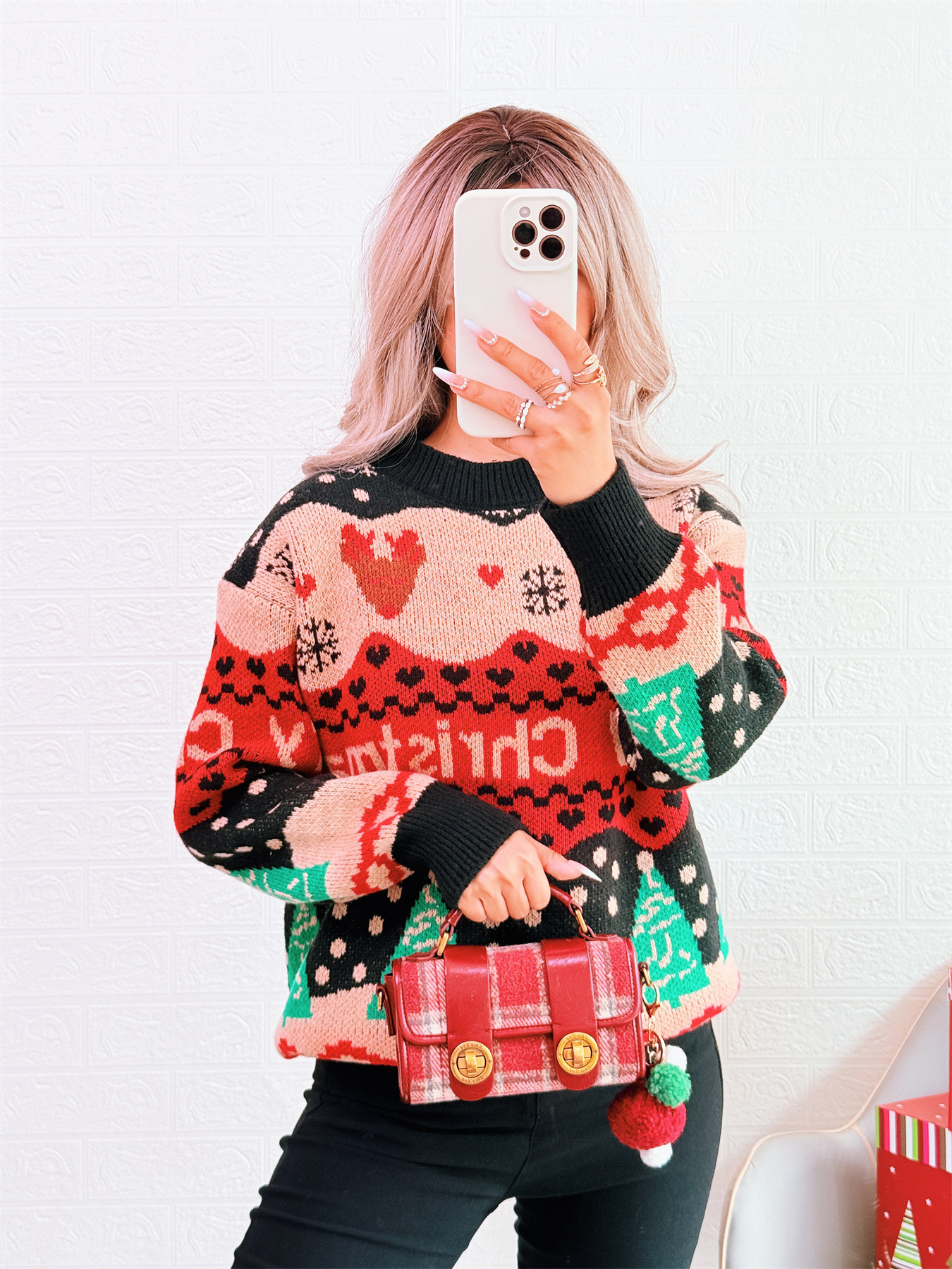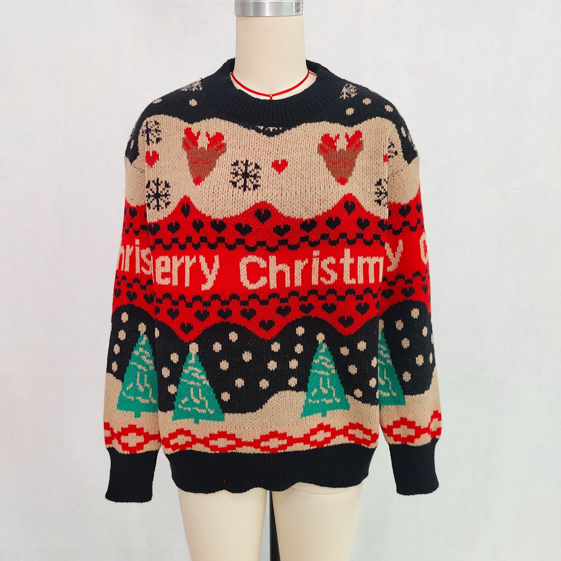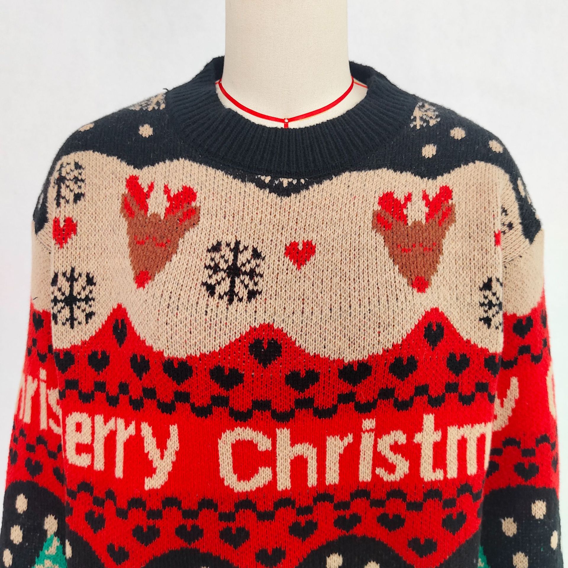 Fall Winter Christmas Contrast Color Loose Sweater Women round Neck Year Sweater