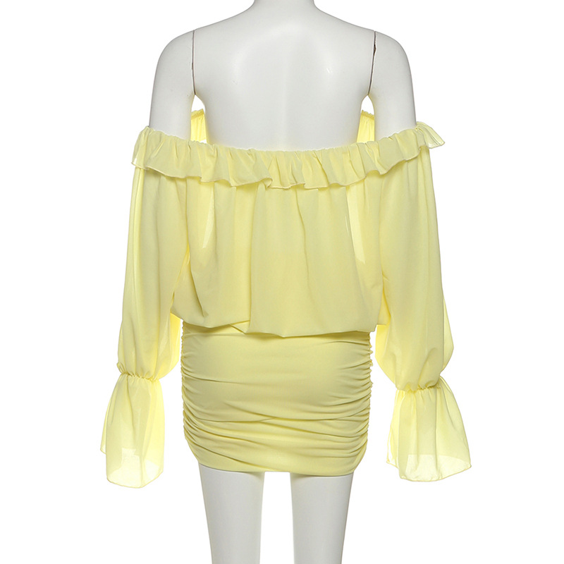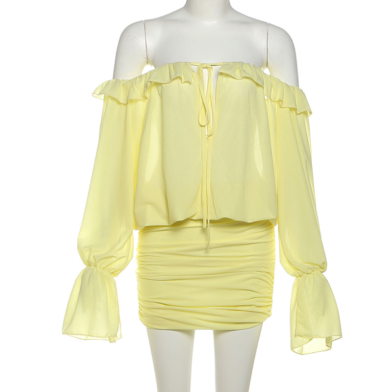 Fall Women Clothing Sexy off the Shoulder Hollow Out Cutout out Tied Solid Color Slim Hip Bag Dress
