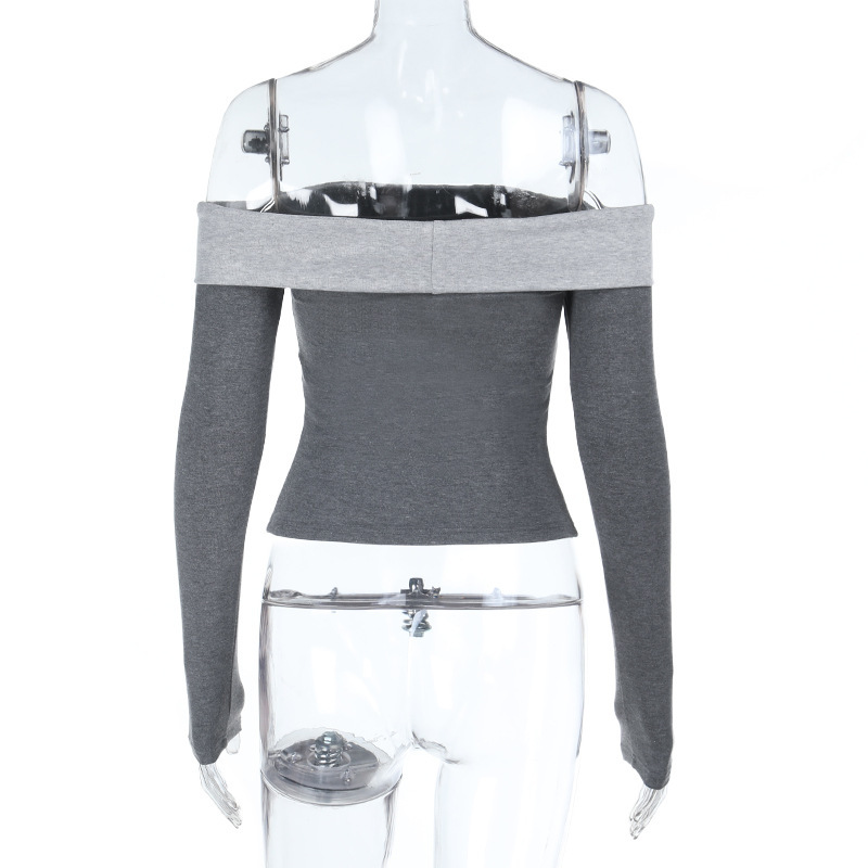 French Pure Sexy off Shoulder Inner Wear Women Spring Autumn Long Sleeve T shirt off Shoulder Bottoming Shirt Top