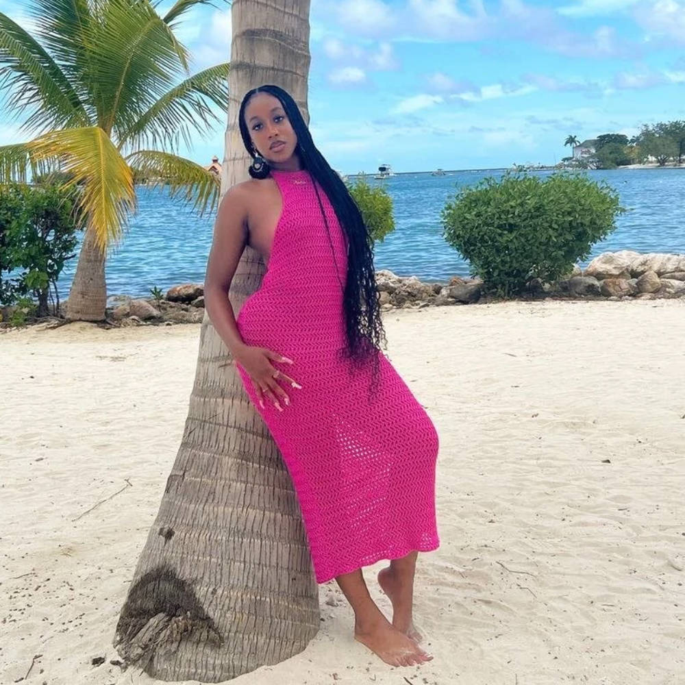Halter Backless Maxi Dress Knitted Sleeveless Beach Bohemian Long Hollow Out Cutout Dress Women