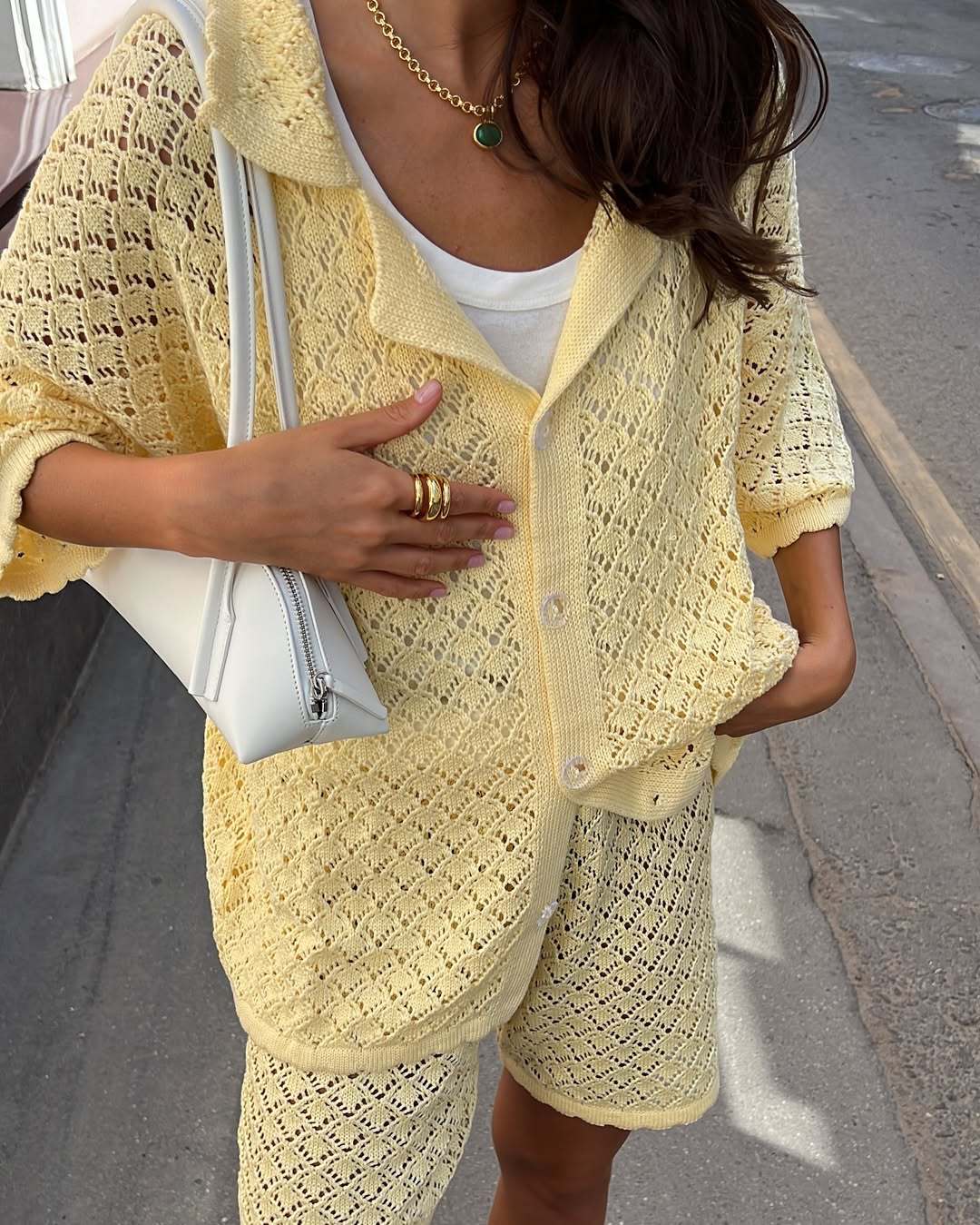 Knitted Crocheted Suit Skirt Multi Color Cardigan Buckle Skirt All Match Two Piece Sets Beach Beach Cover Up Summer
