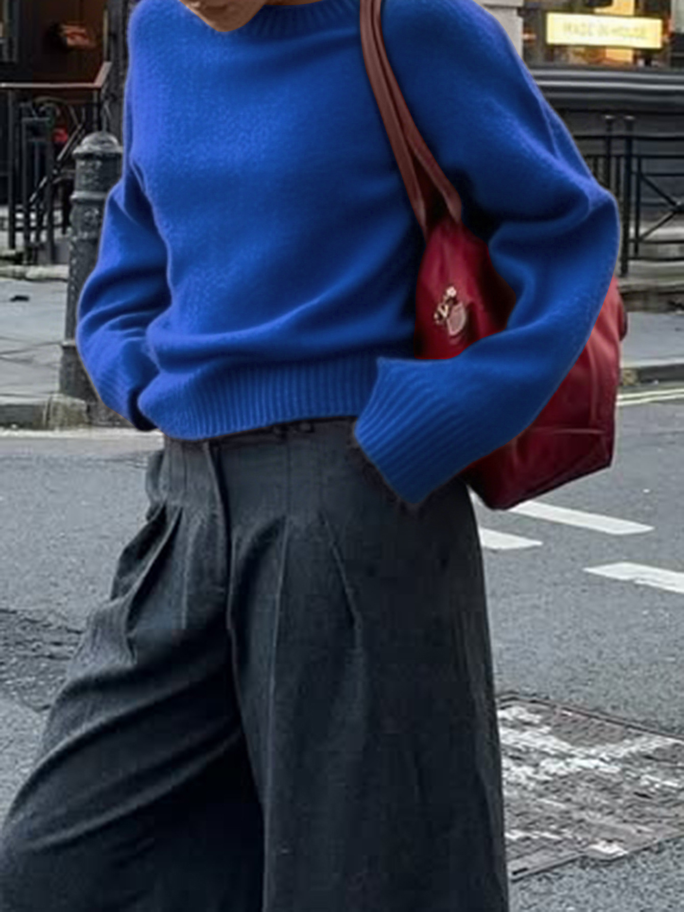 Minimalist round Neck Long Sleeve Sweater Bottoming Woolen Women Clothing Autumn Winter