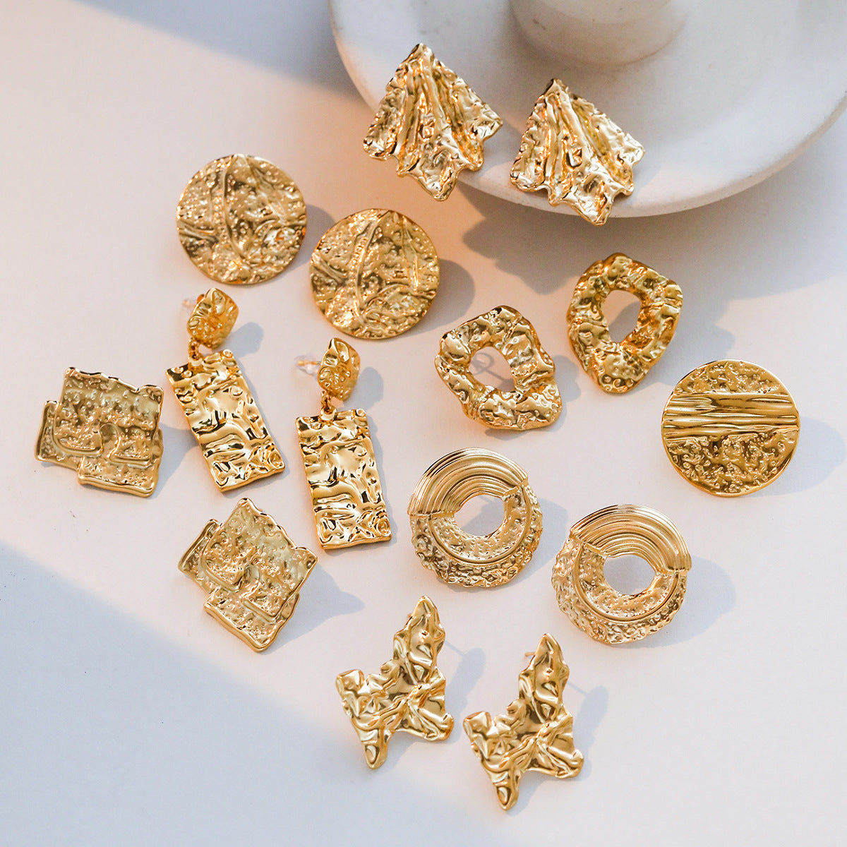 Niche Design Frosted Karst Pleated Irregular Asymmetric Titanium Steel Earrings Women Light Luxury Cold Geometric Abstract Shape Earrings