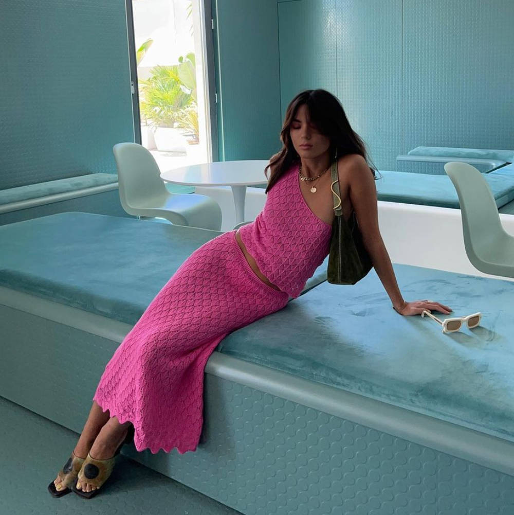 One Shoulder Knitted Camisole Beach Top Short Cropped Cropped Backless Underwaist Half Length Skirt Set for Women