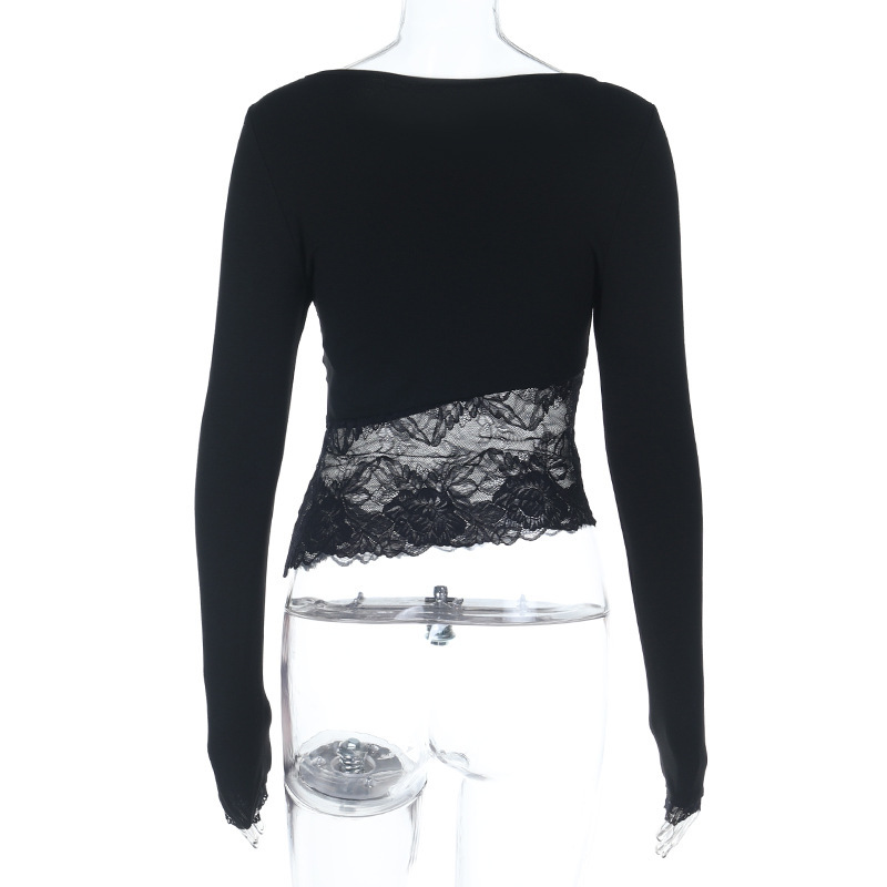 Pure round Neck Lace Stitching Long Sleeve T shirt Women Autumn Inner Wear Bottoming Shirt Spicy