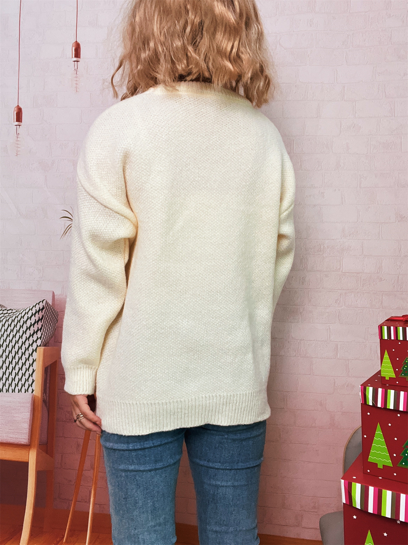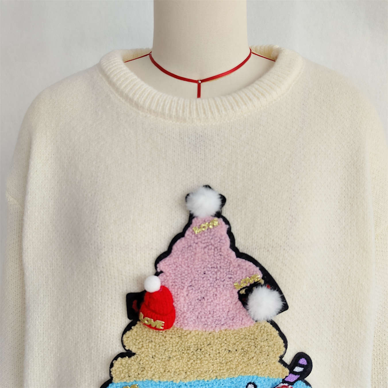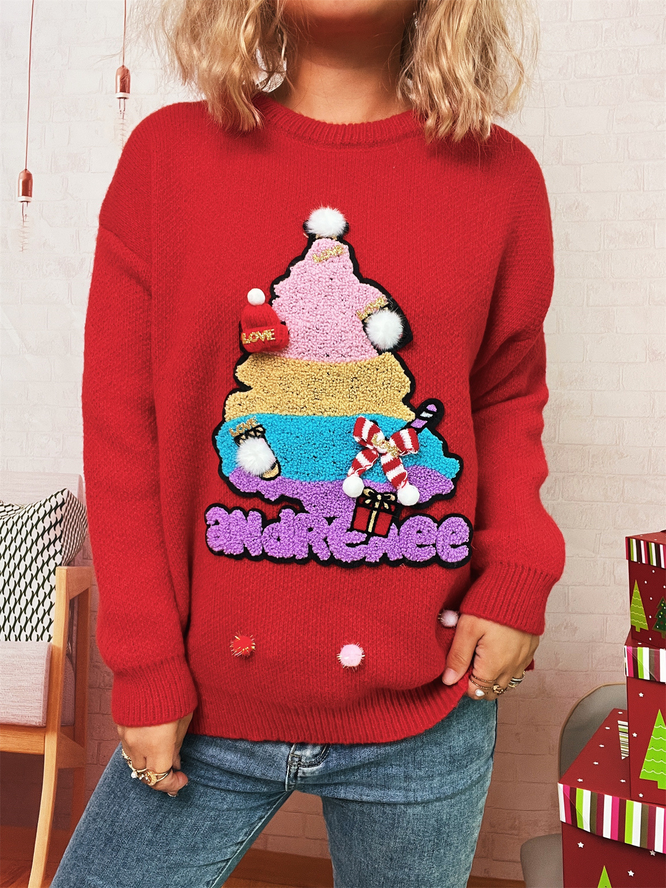 Retro Christmas Tree Knitted Pullover Crew Neck Casual Warm Chic Sweater Women