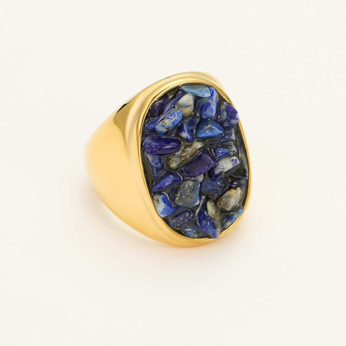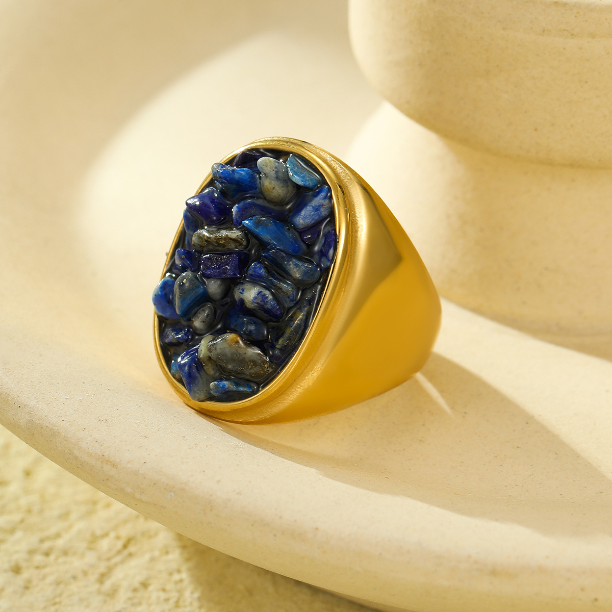 Retro Trendy All Match Stainless Steel Natural Stone Geometric Abstract Ring Non Fading Ring Simple Exquisite High Grade Bracelet