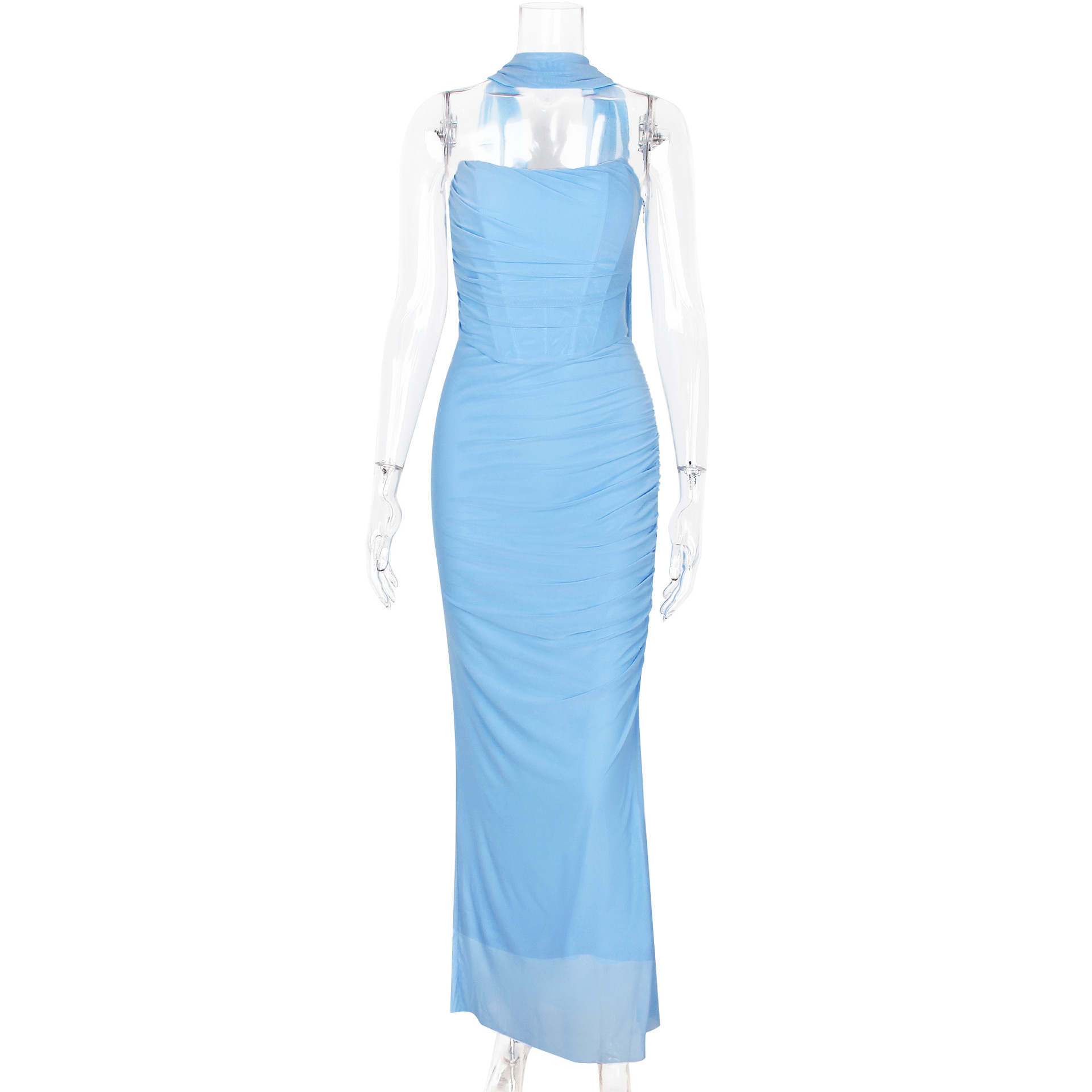 Sexy Dress Boning Corset Tube Top Skinny Sheath Skirt Long Skirt Set Autumn Two-Piece Set High Grade with Scarf