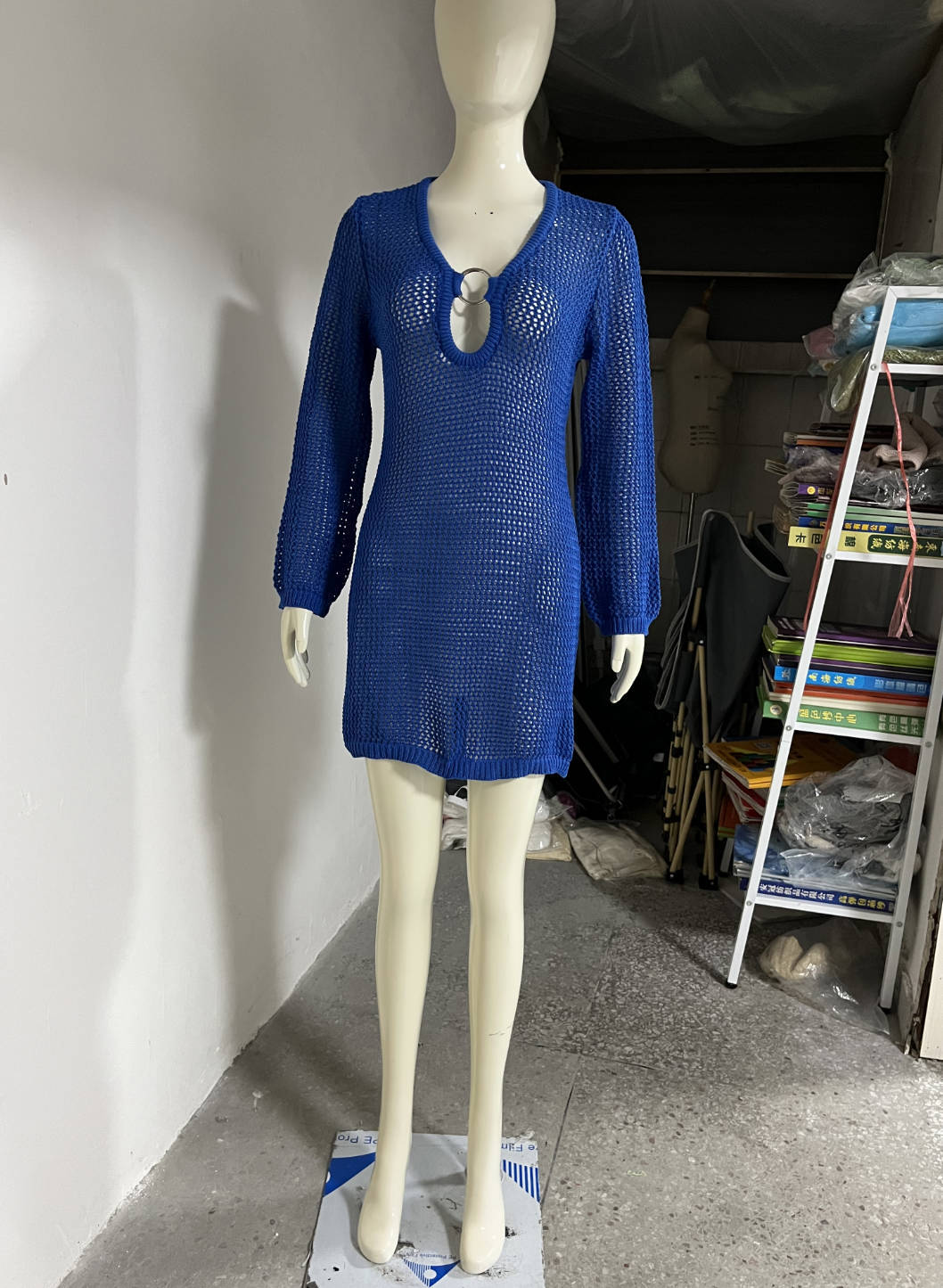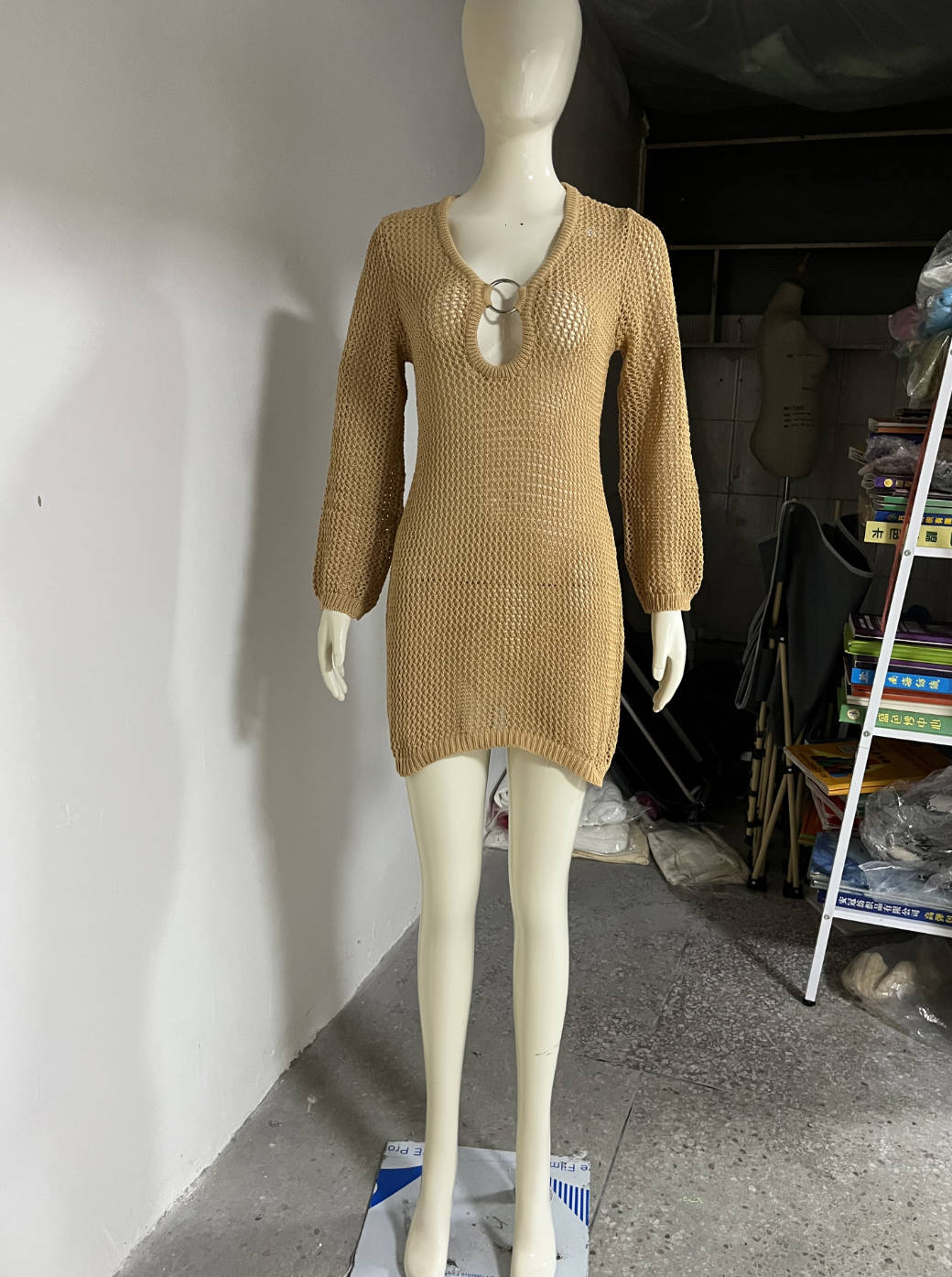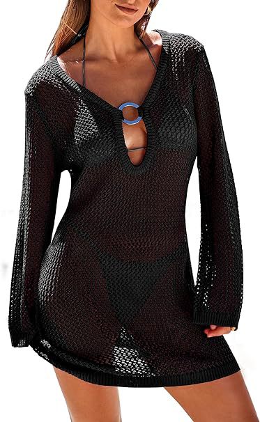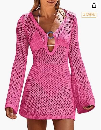 Sexy Ring Long Sleeve Hollow Out Cutout Beach Dress Spring Summer Seaside Dress Women
