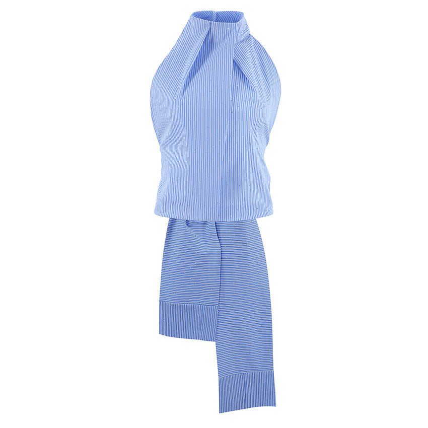 Sexy Short Jacquard Halter Backless Striped Spaghetti Straps Summer Vest for Women