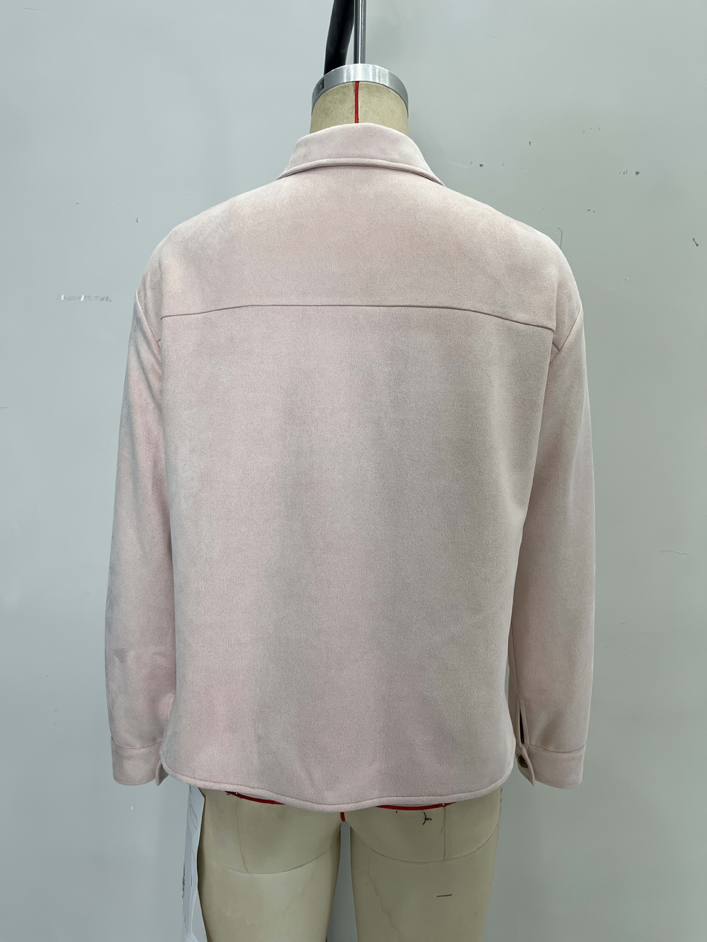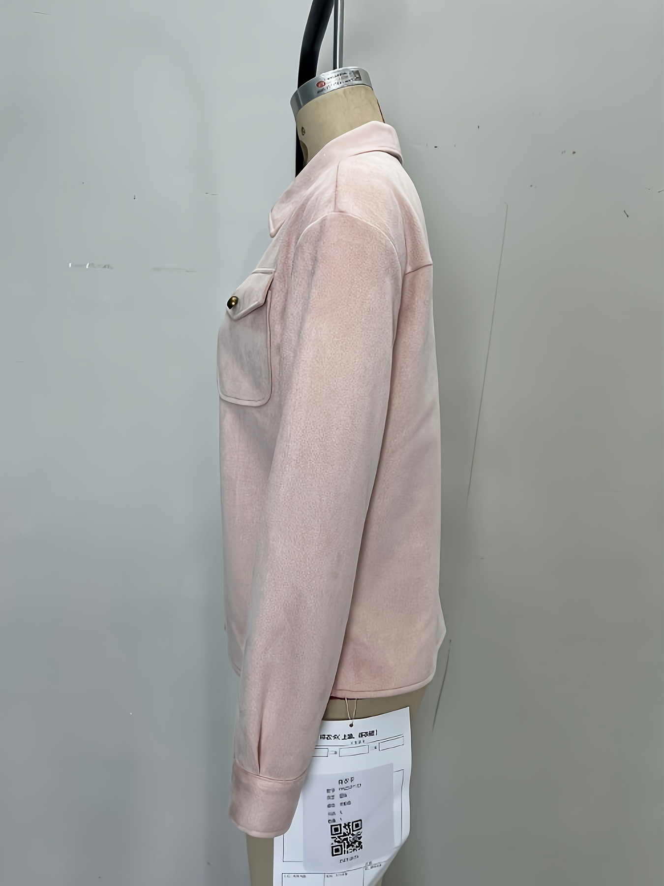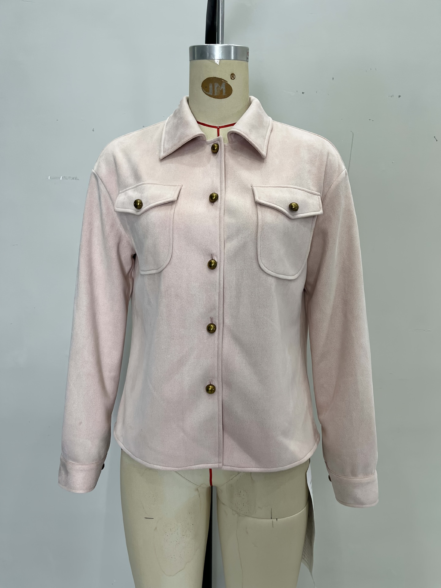 Simple Casual Double Chest Bag Brushed Suede Collared Long Sleeve Shirt Autumn Jacket Coat Women