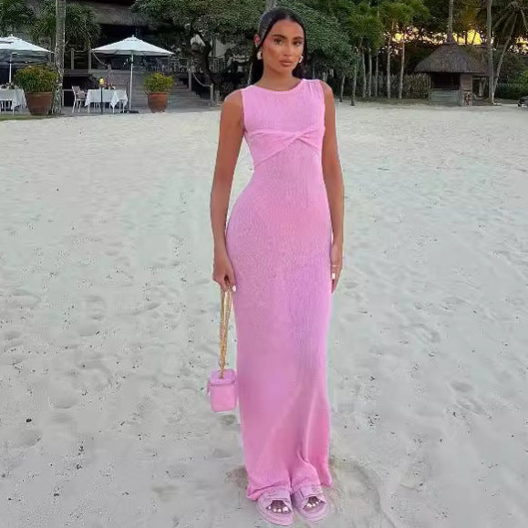 Sleeveless Tight Dress Women round Neck Knitted Solid Color Beach Summer Dress Women Clothing