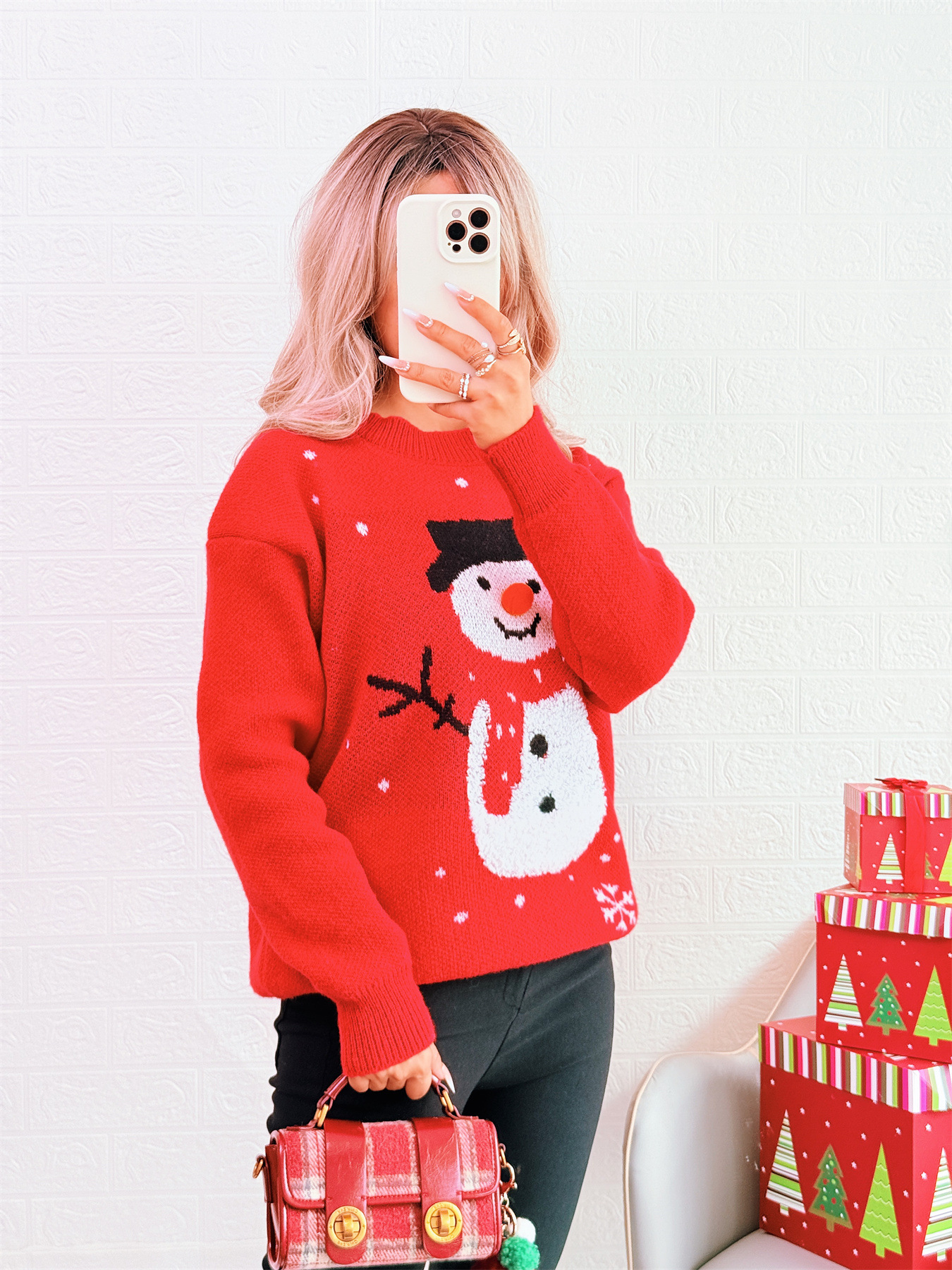 Snowman Year Knitted Pullover Casual Warm Color Matching Chic Christmas Sweater