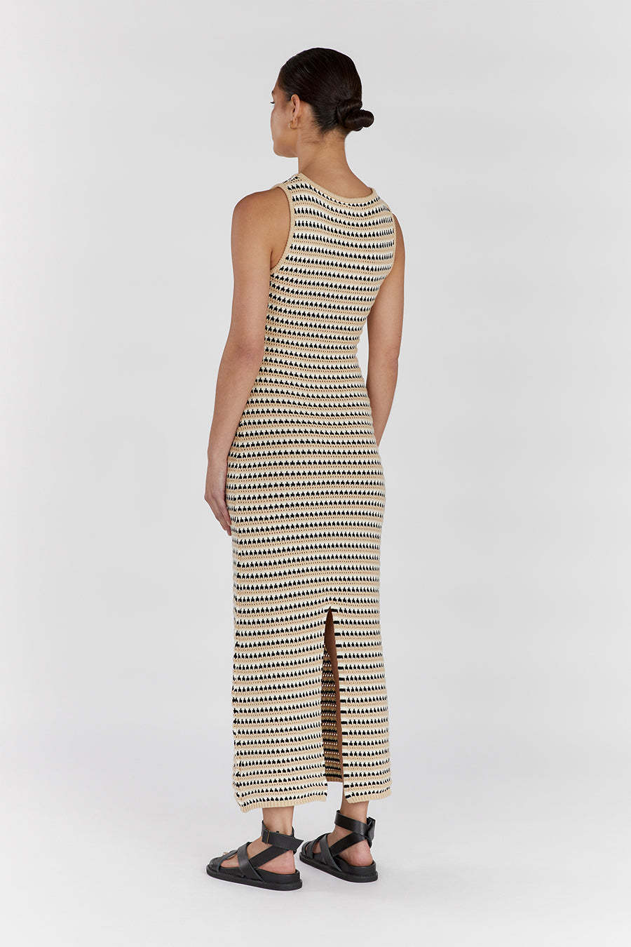 Striped Contrast Color Beach Vacation Sexy Dress Knitted Hollow Out Cutout Out Long Sleeveless Knitted Dress
