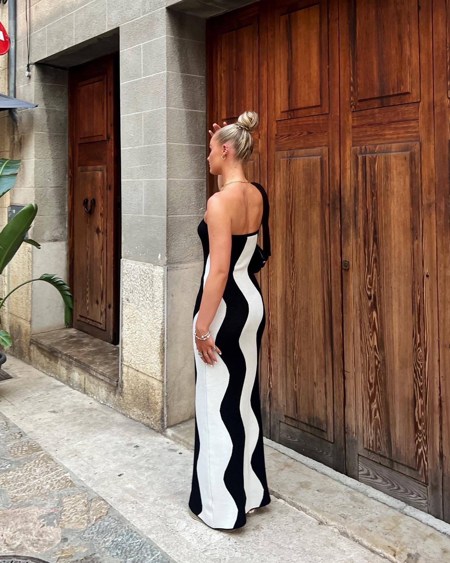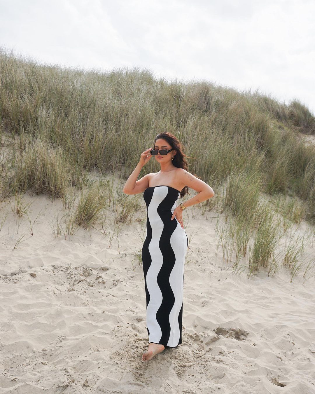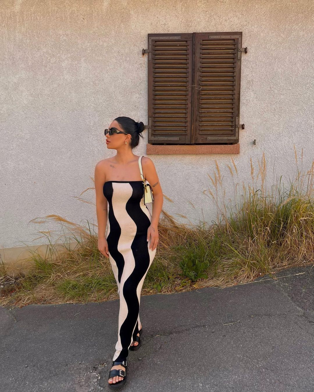 Wave Striped Strapless Dress Beach Bohemian Casual Slimming Dehaired Angora Knitted Sheath Dress Women