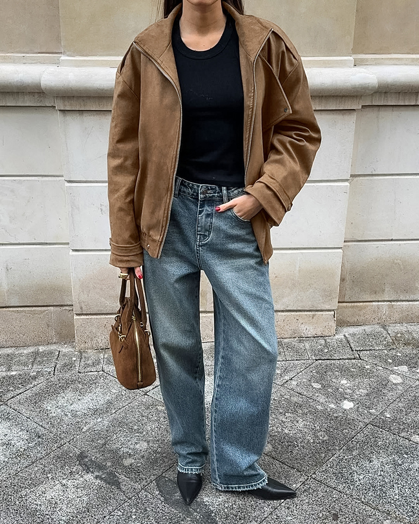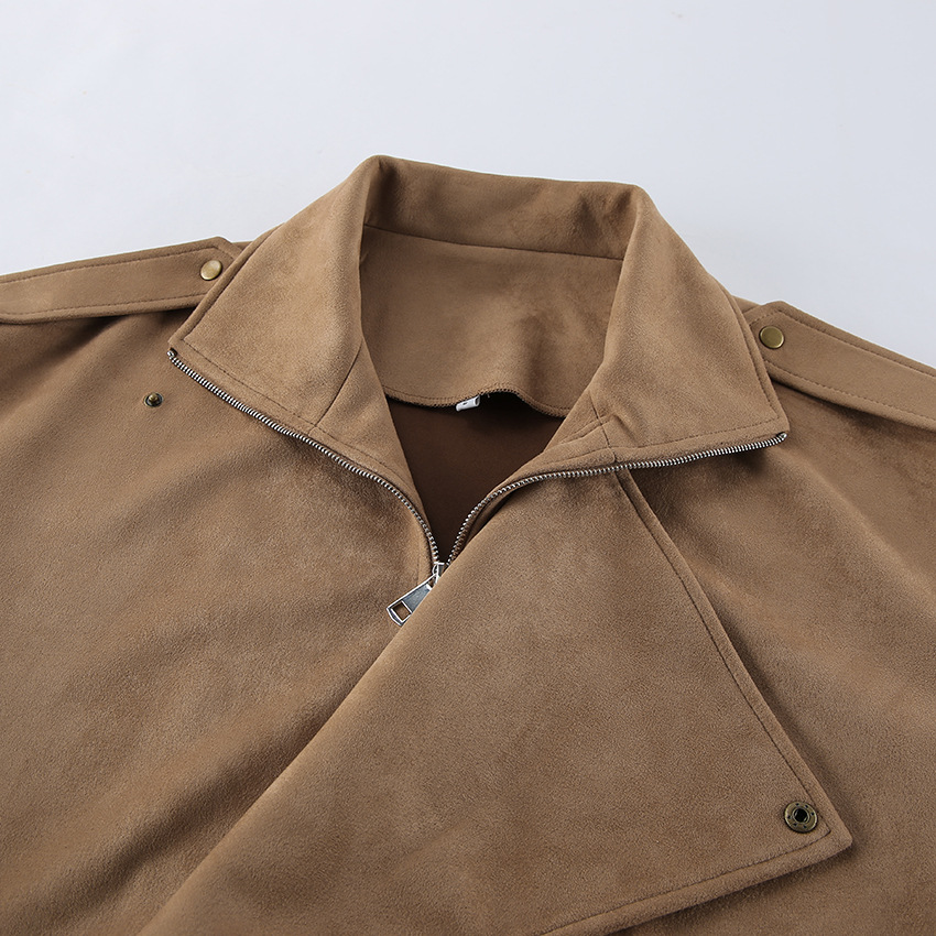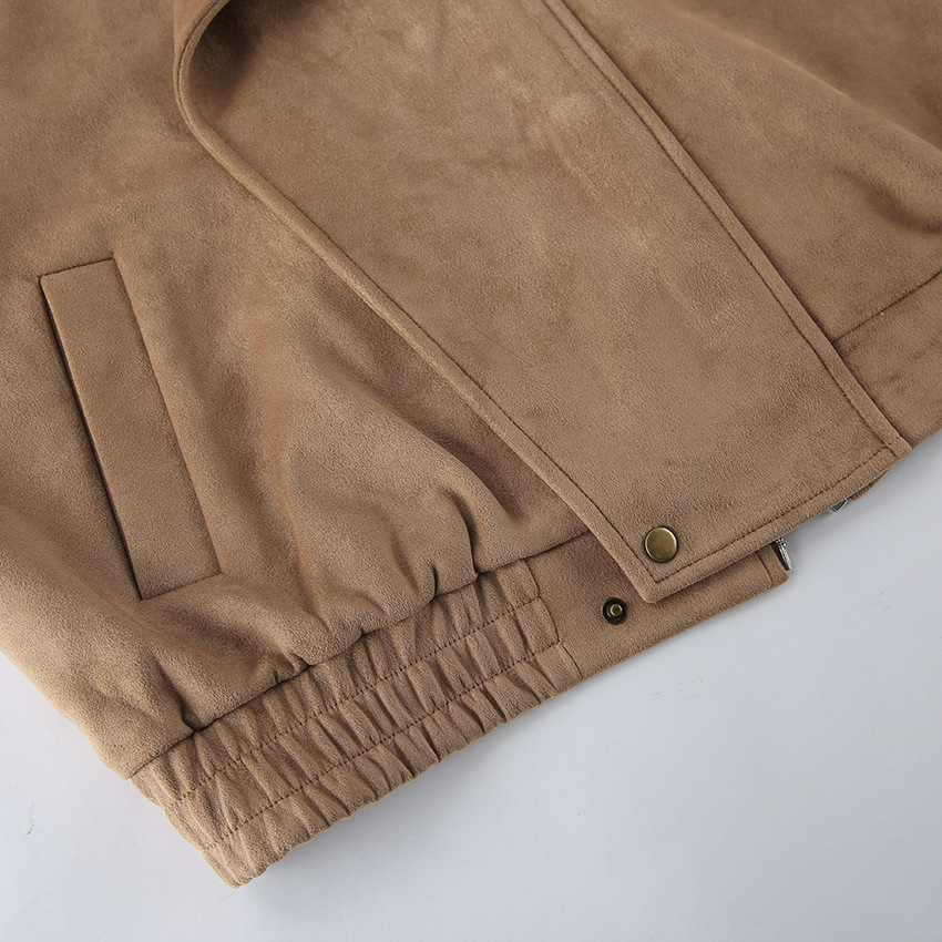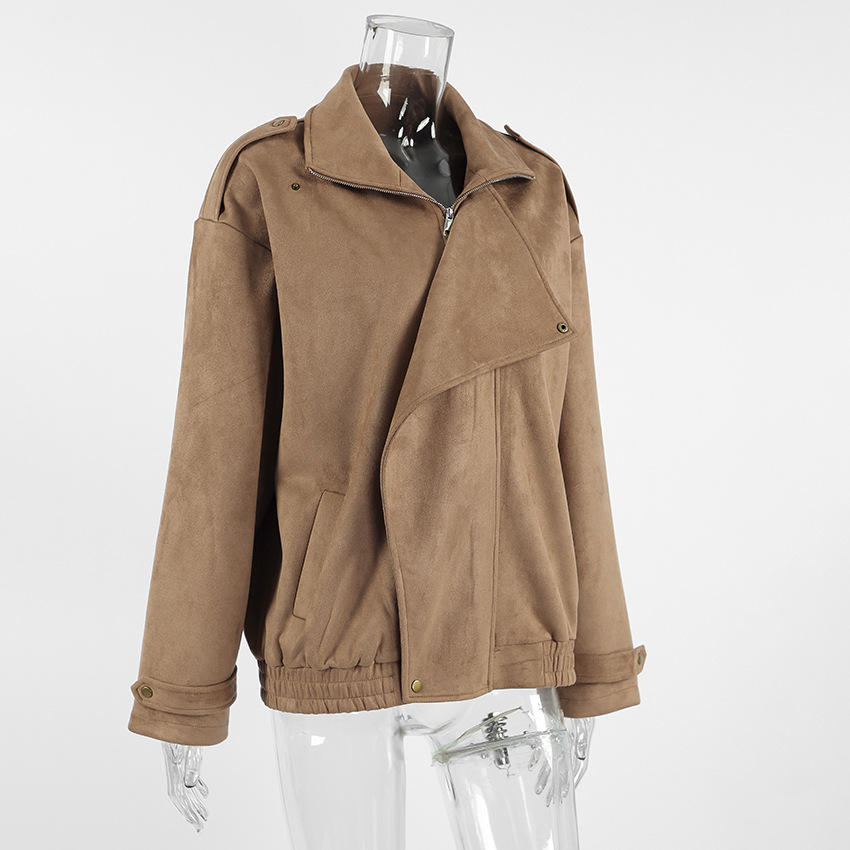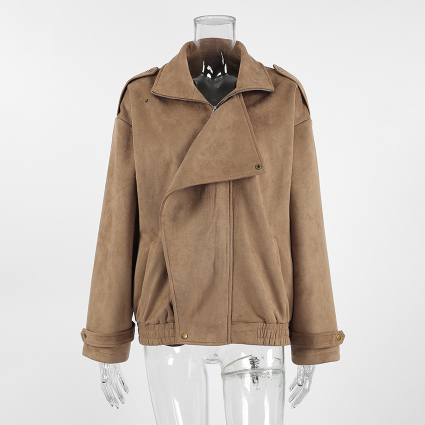 Women Brown Loose Jacket Coat Autumn Winter Retro Maillard Casual