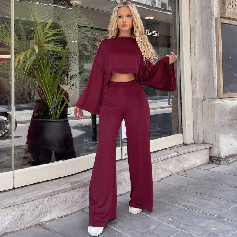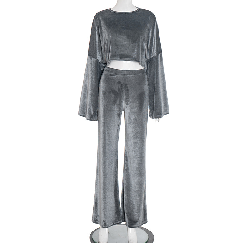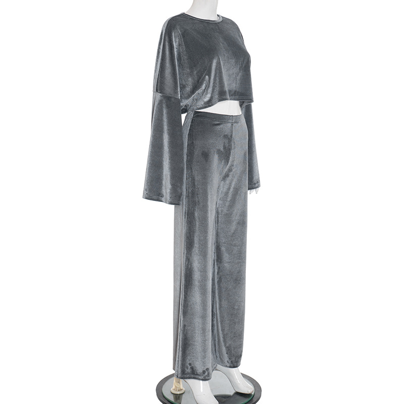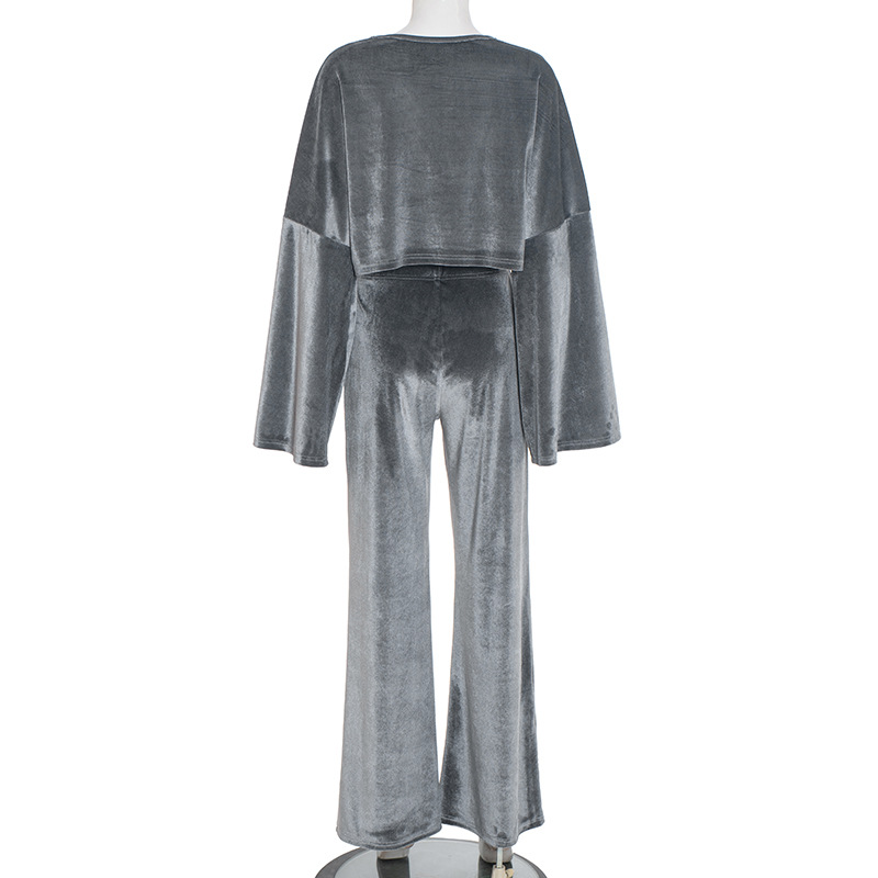 Women Clothing Autumn Casual Velvet A line Shirt Pants Two Piece Sets Women