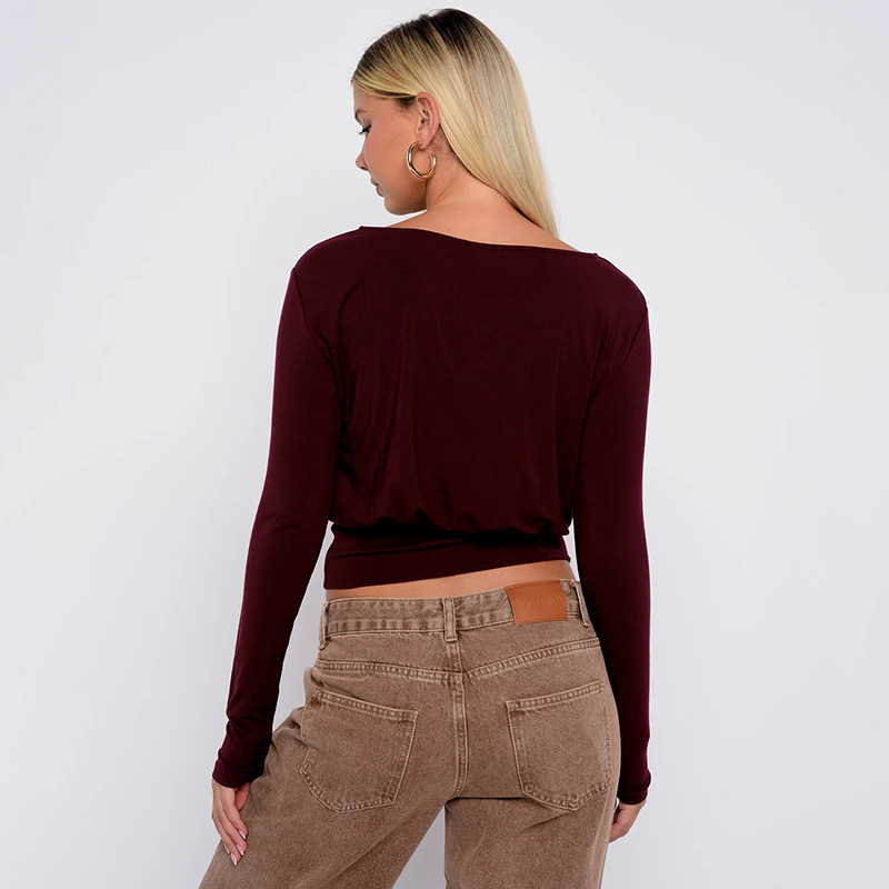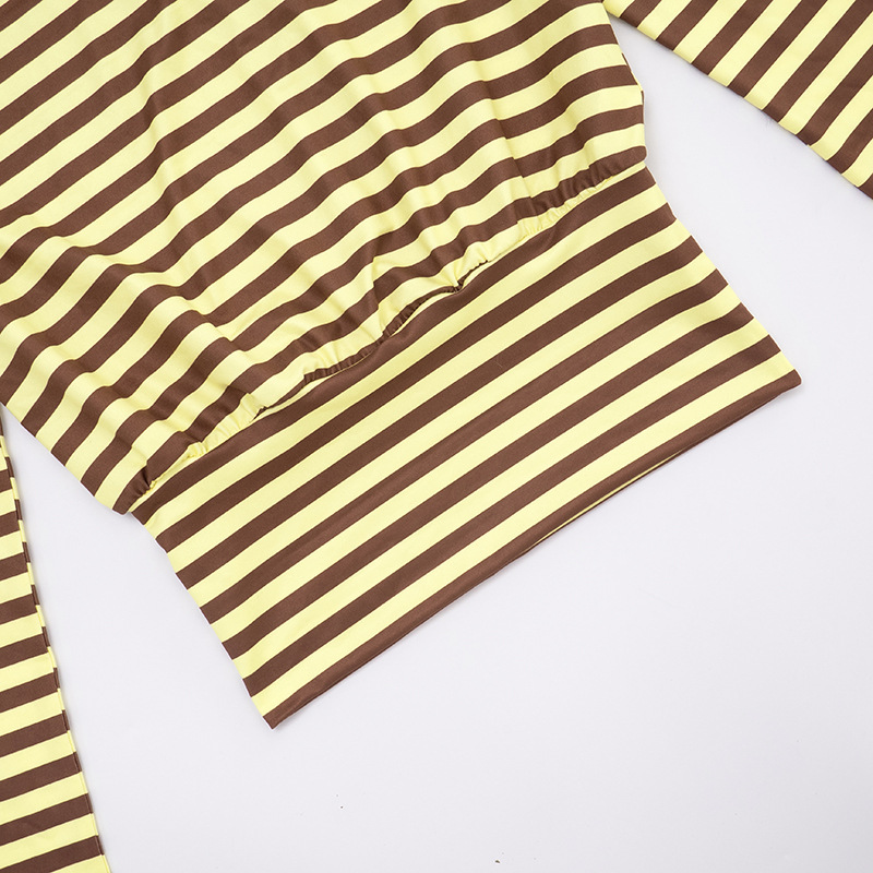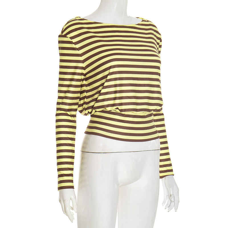 Women Clothing Autumn Winter Casual Striped Personality Minimalist Long Sleeve Waist Controlled Top