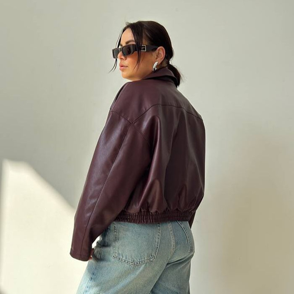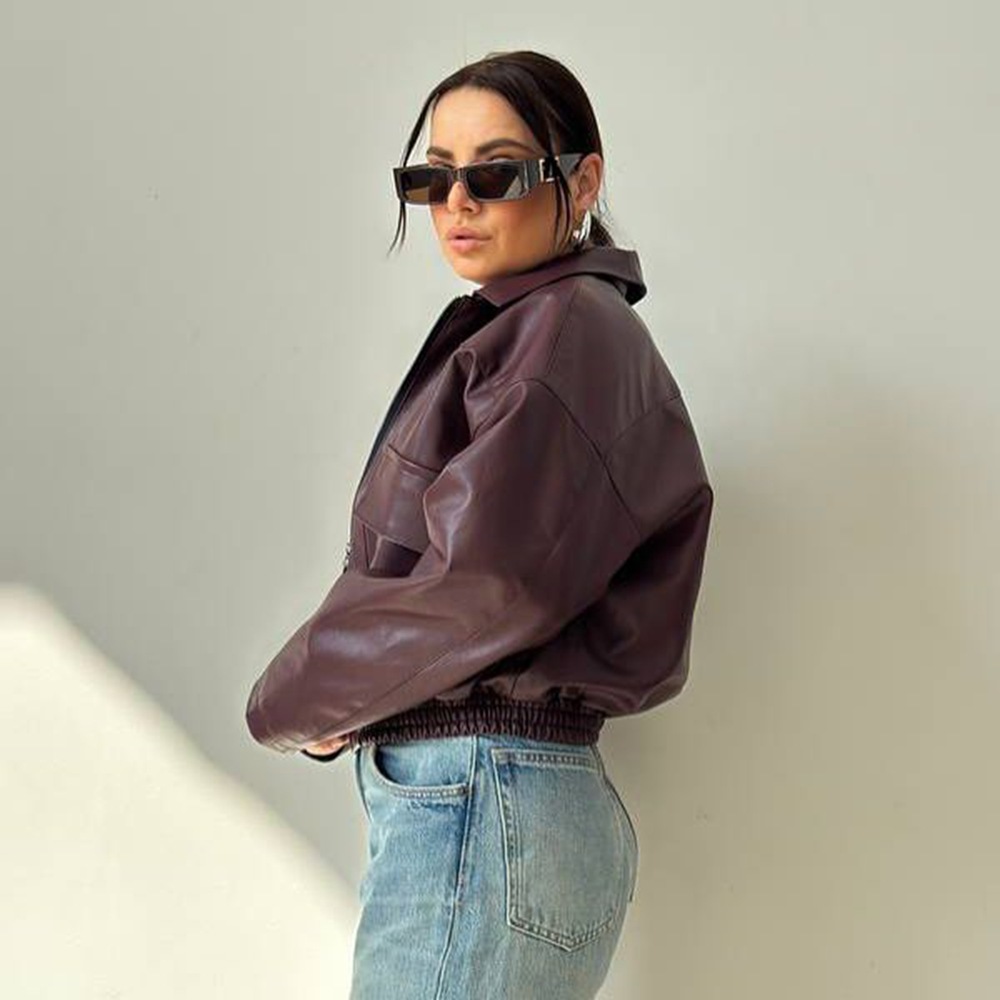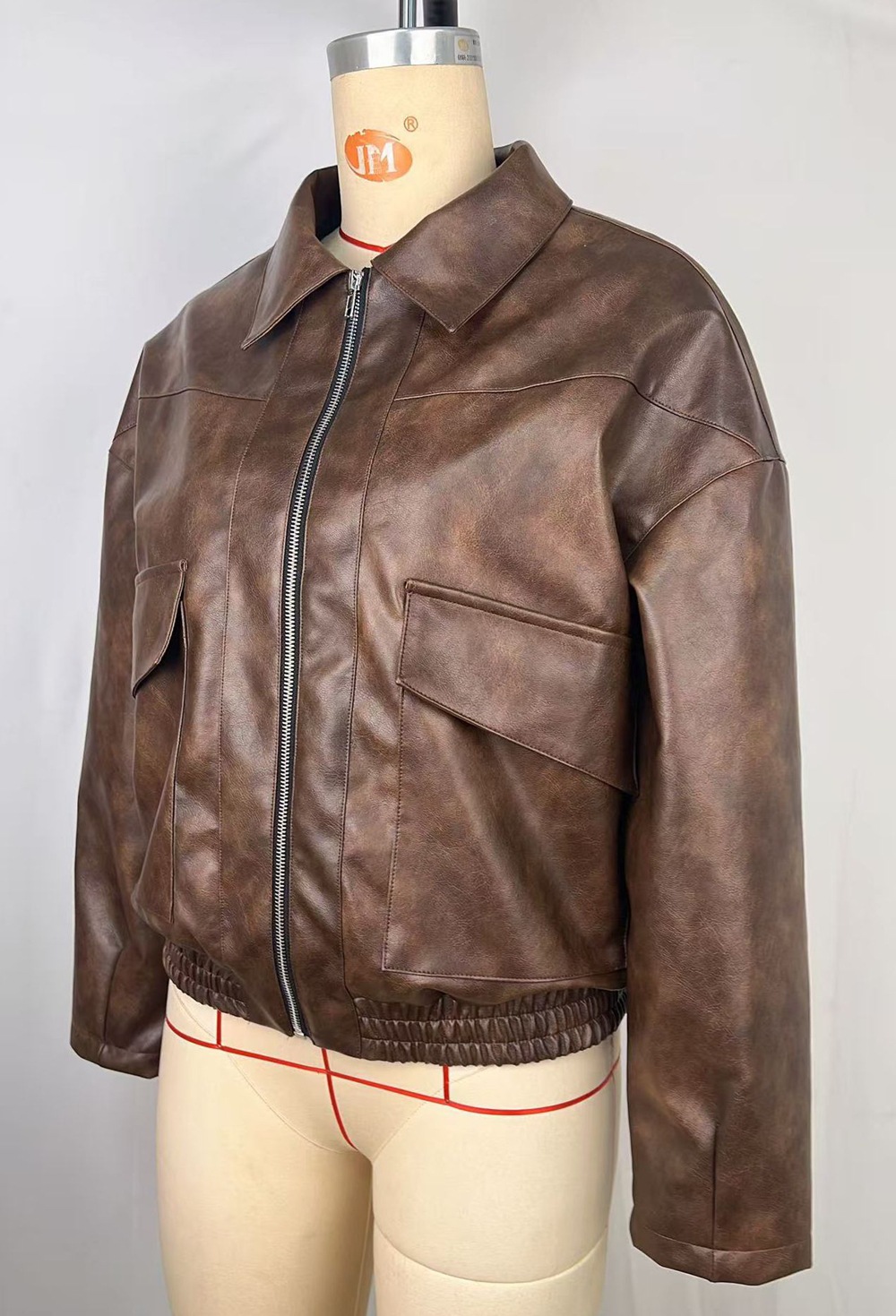 Women Clothing Autumn Winter Coat Bomber Jacket Retro Old Money Leather Motorcycle