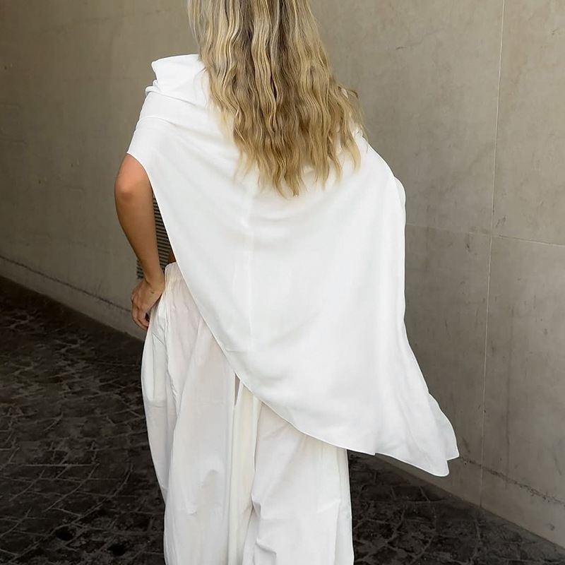 Women Clothing Autumn Winter Solid Color Irregular Asymmetric Padded Shoulder Shawl for Women