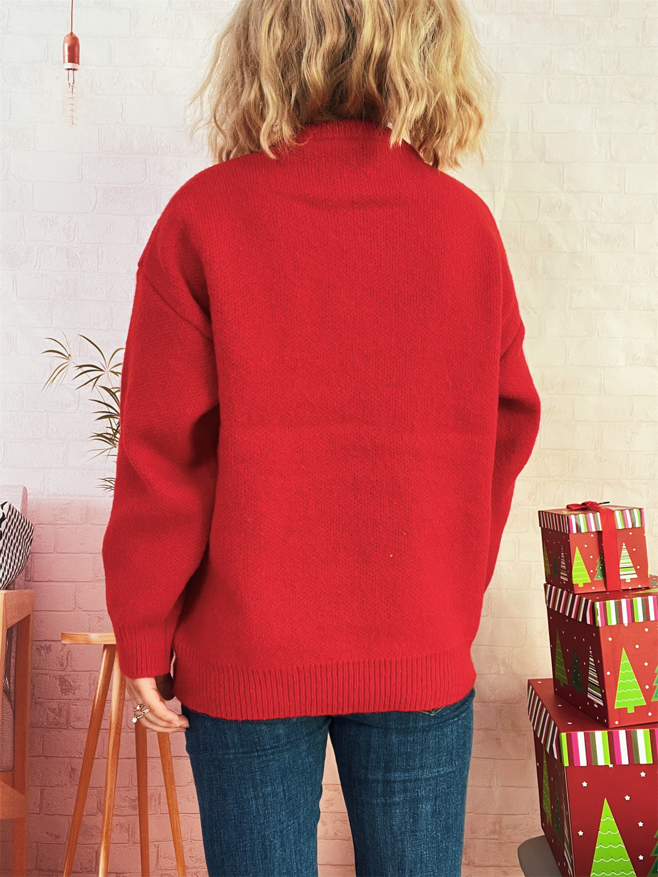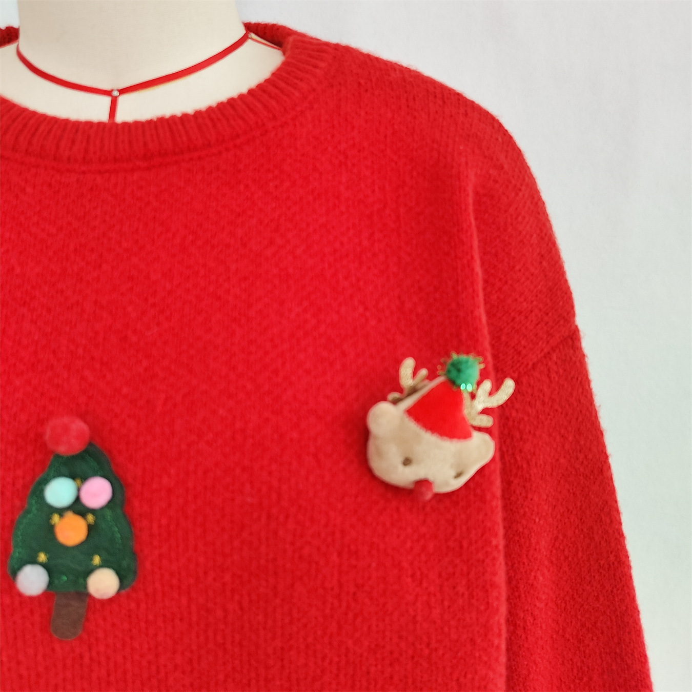 Women Sweater Christmas Stitching Cartoon Knitted Top Crew Neck Casual Autumn Winter