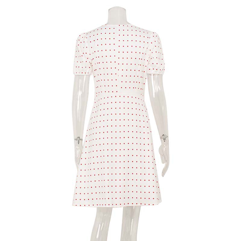 Women Wear Sexy Deep V Plunge French Puff Sleeve Sexy High Waist A line Polka Dot Print Dress Short for Women