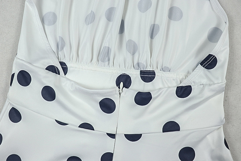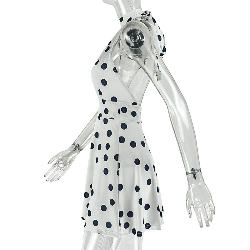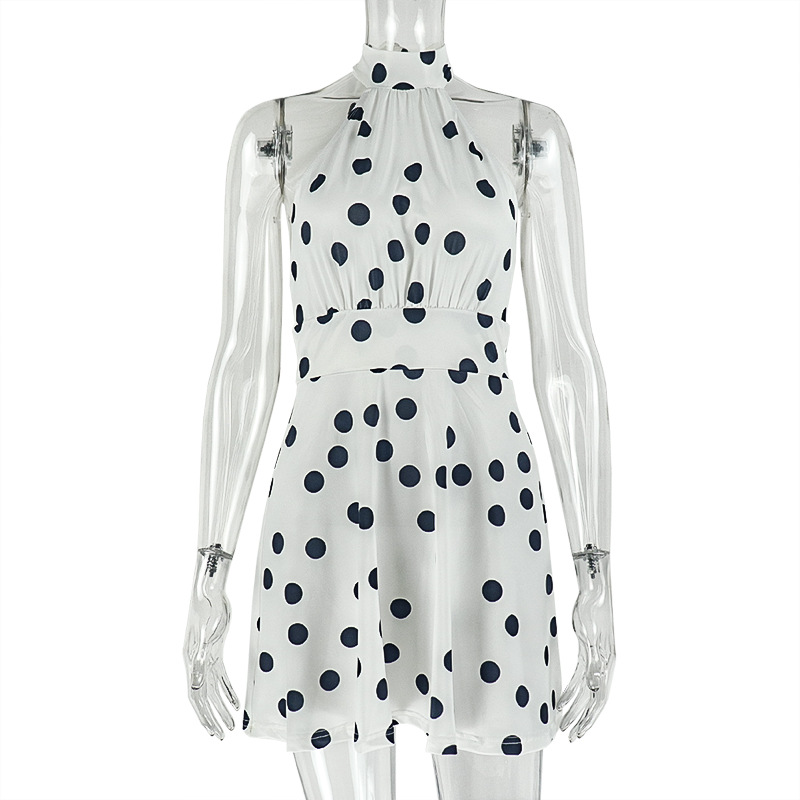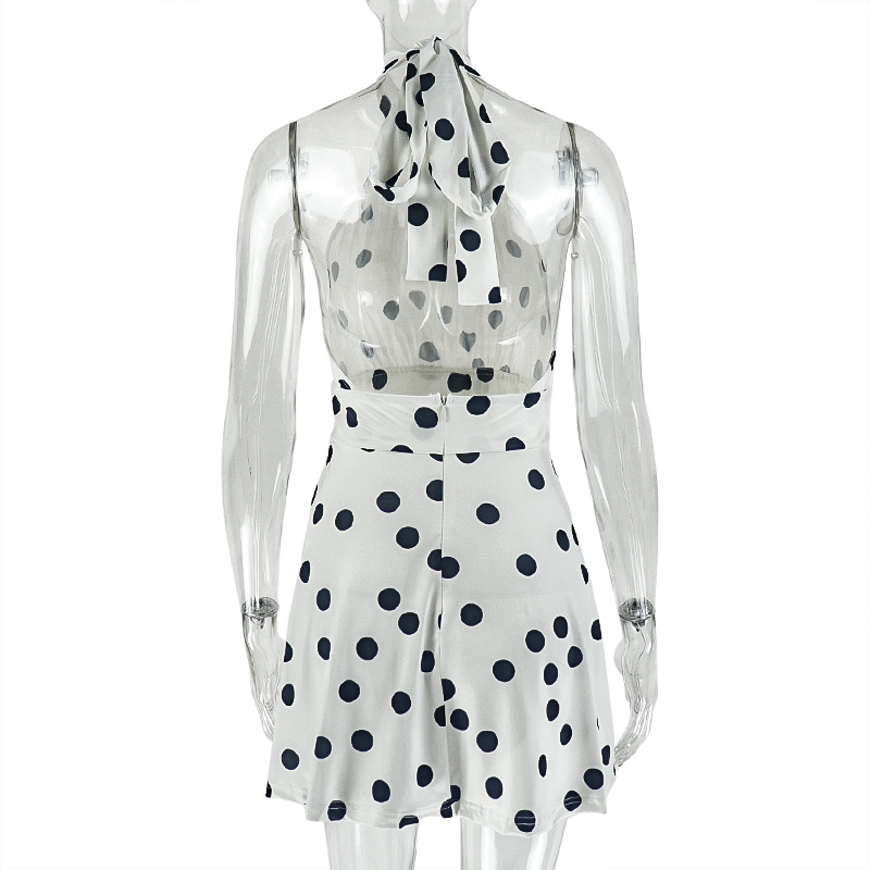 Women Wear Waist Pleated Polka Dot A line Dress Printed Halter Short Dress