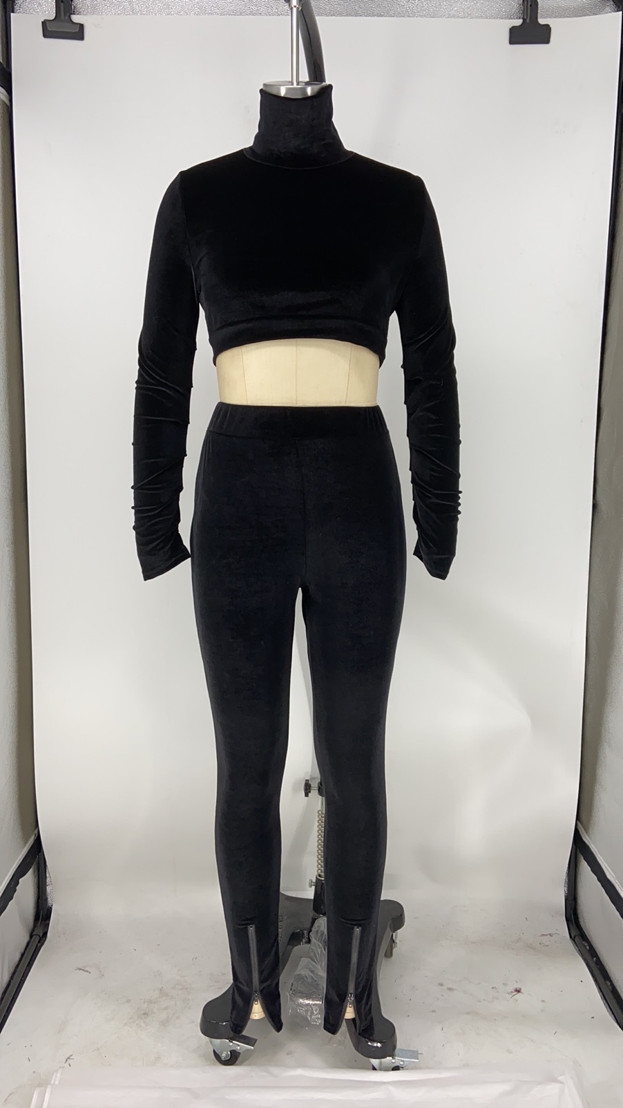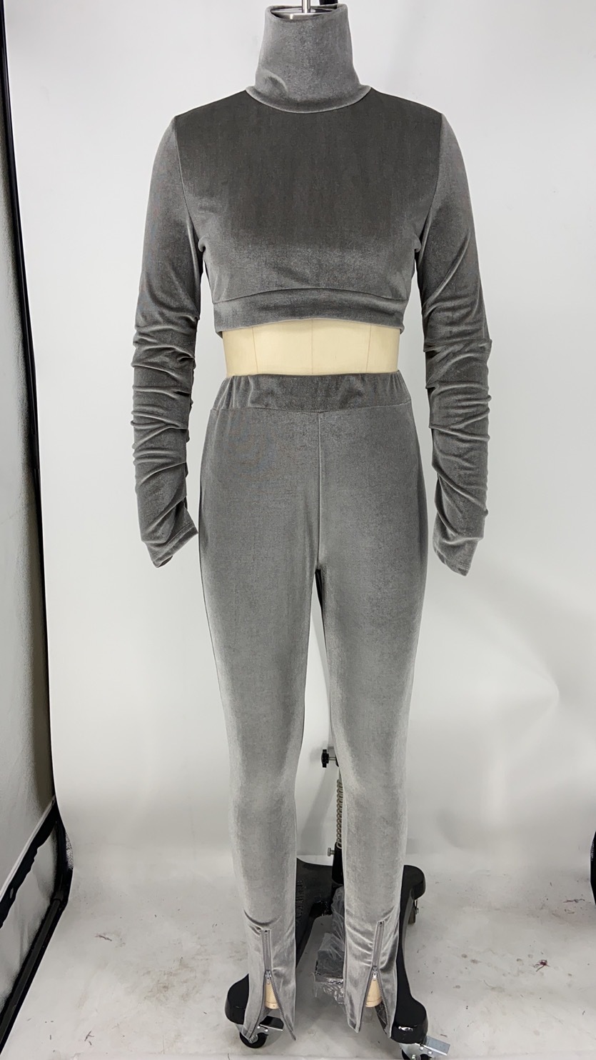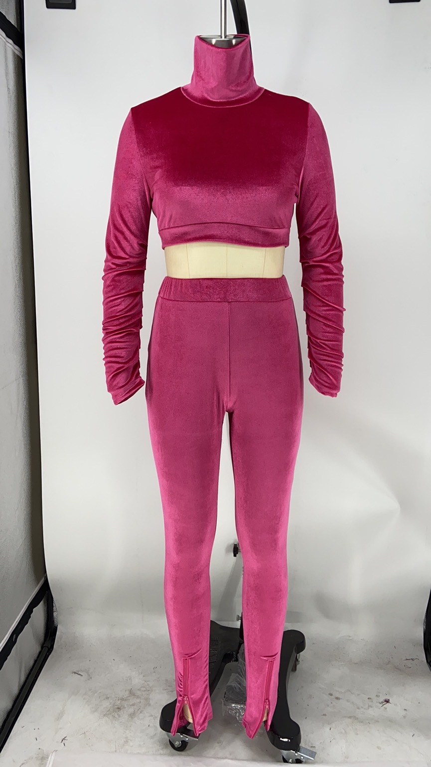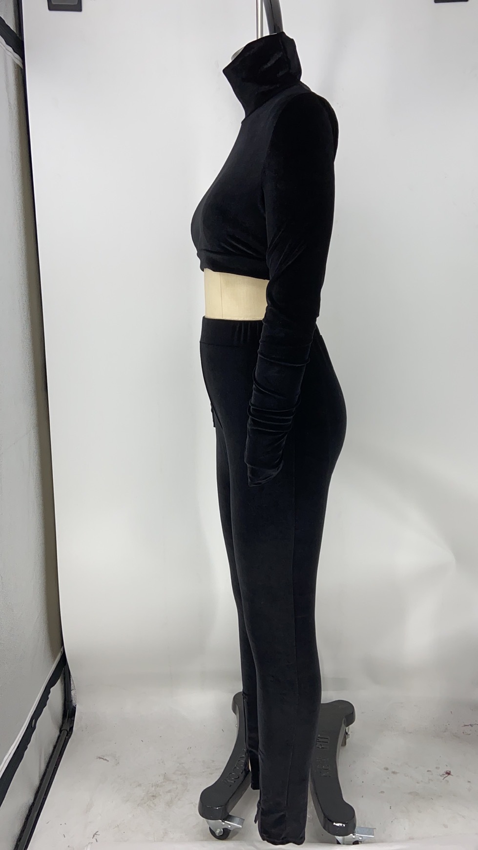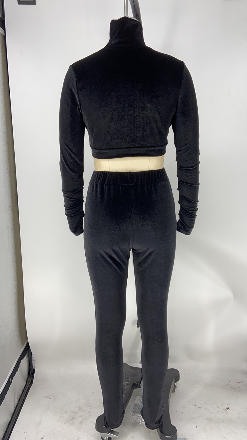 Women Winter Pleuche Long Sleeve Sexy Cropped Two Piece Sets
