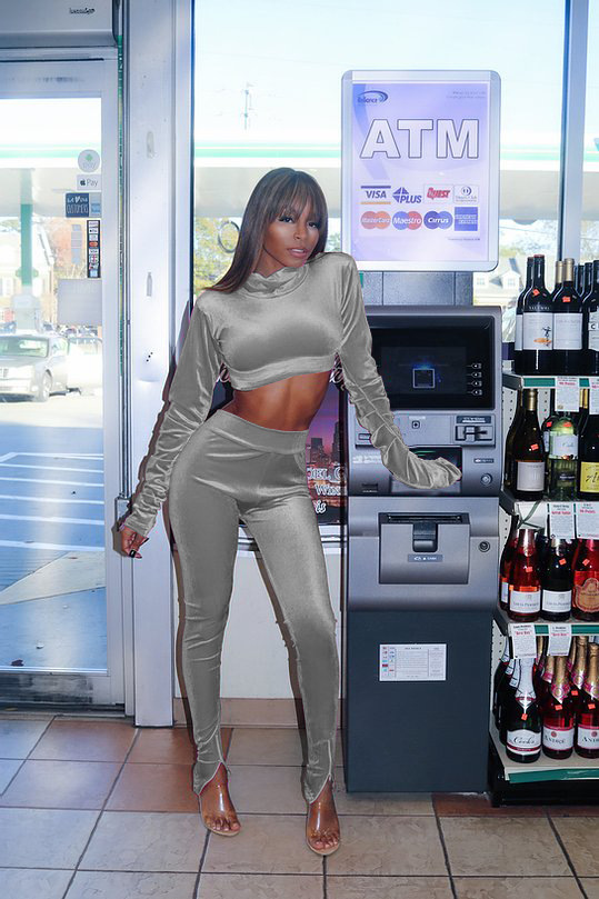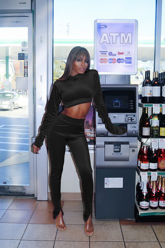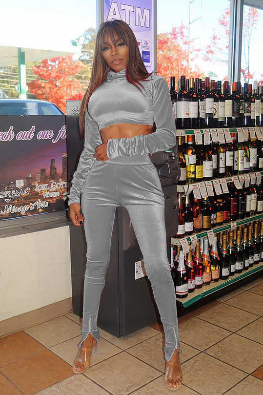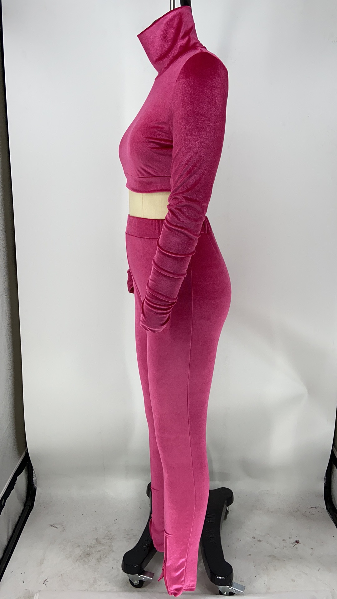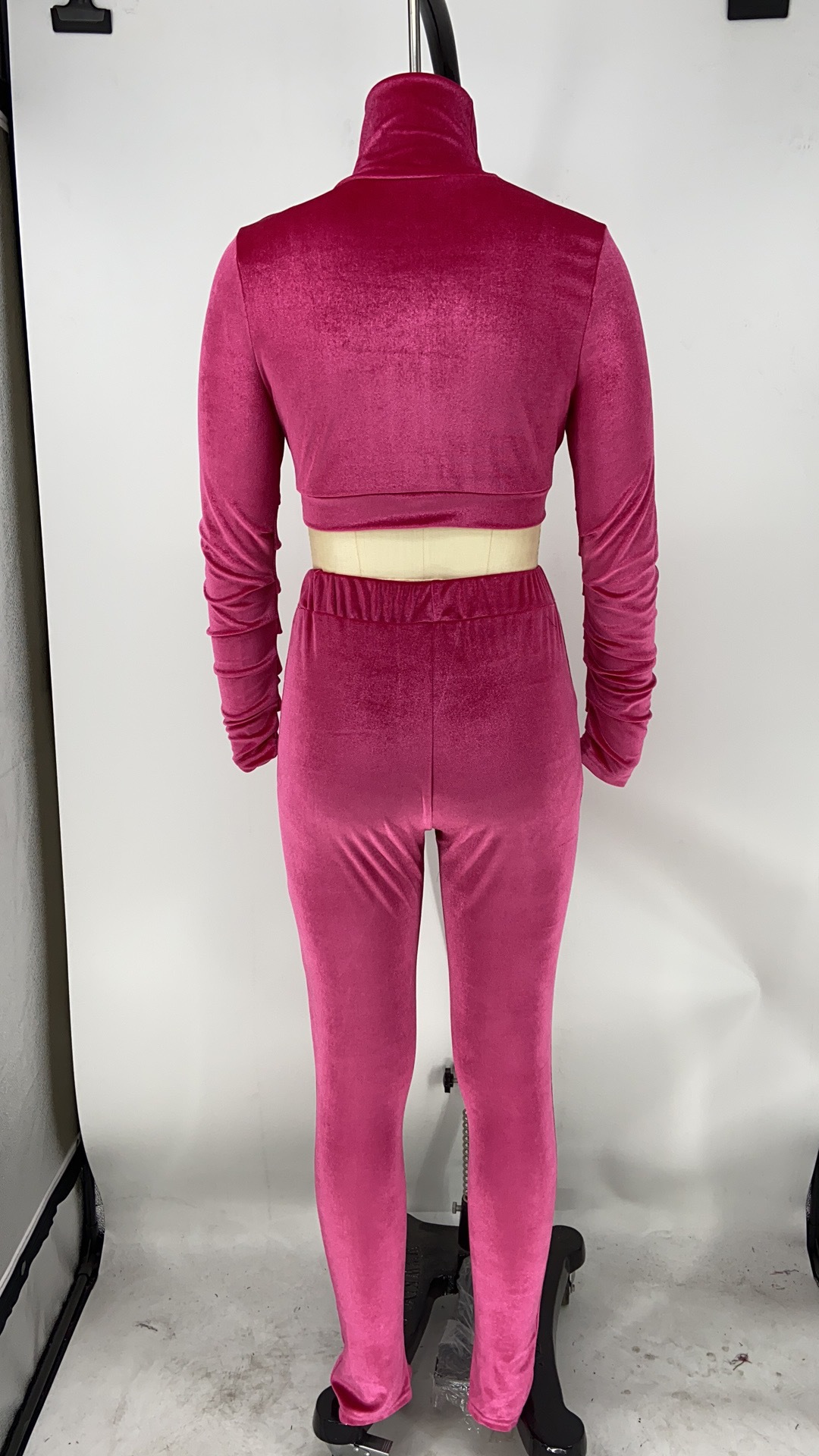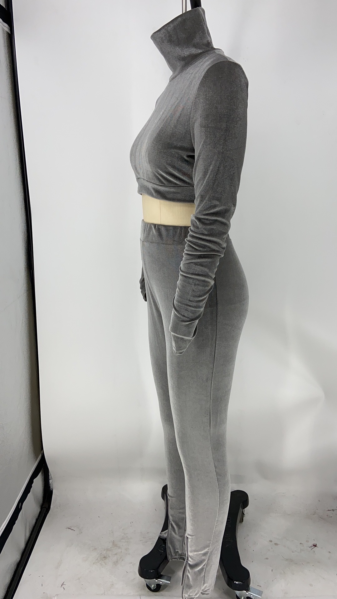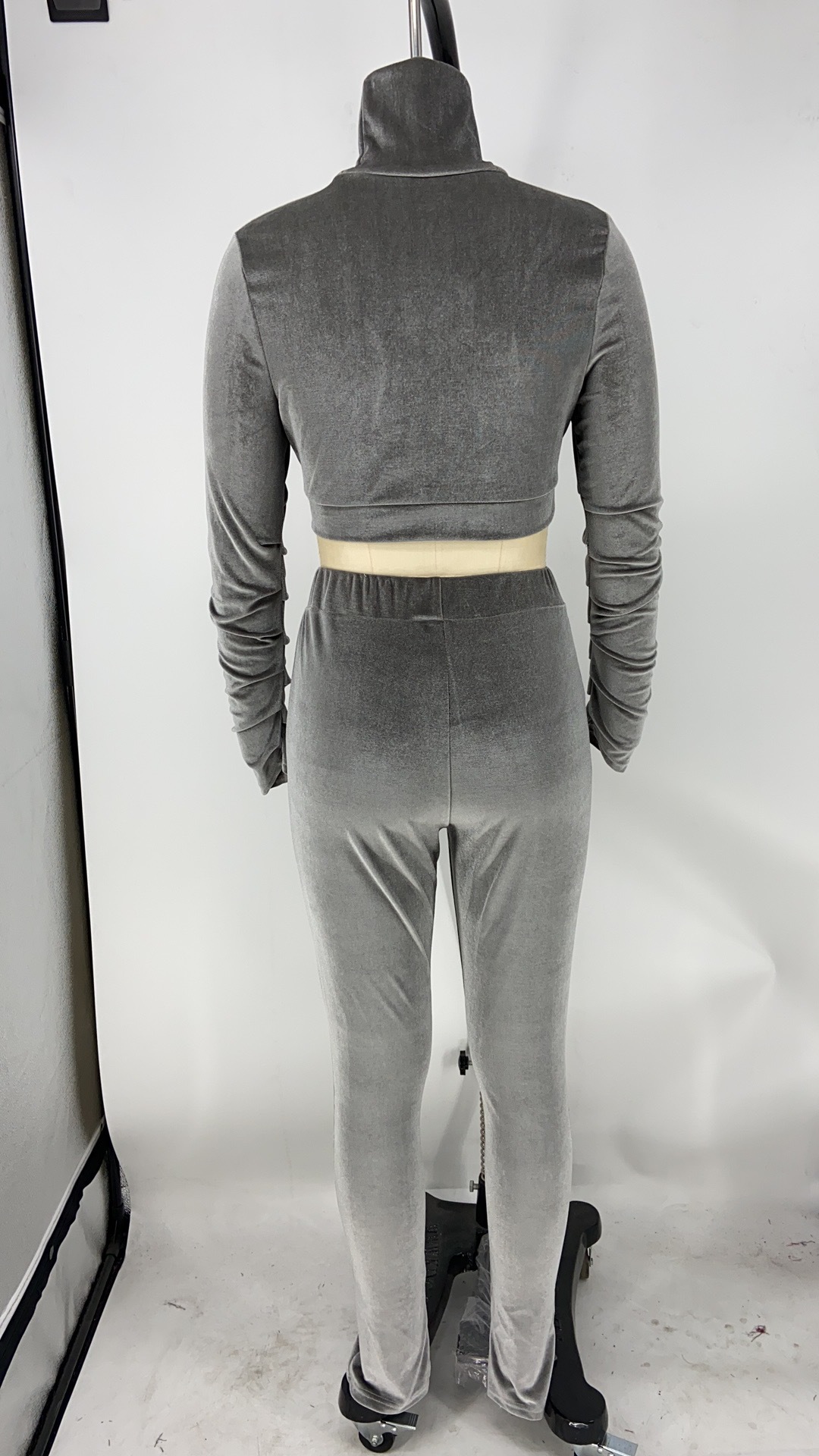 Women Winter Pleuche Long Sleeve Sexy Cropped Two Piece Sets